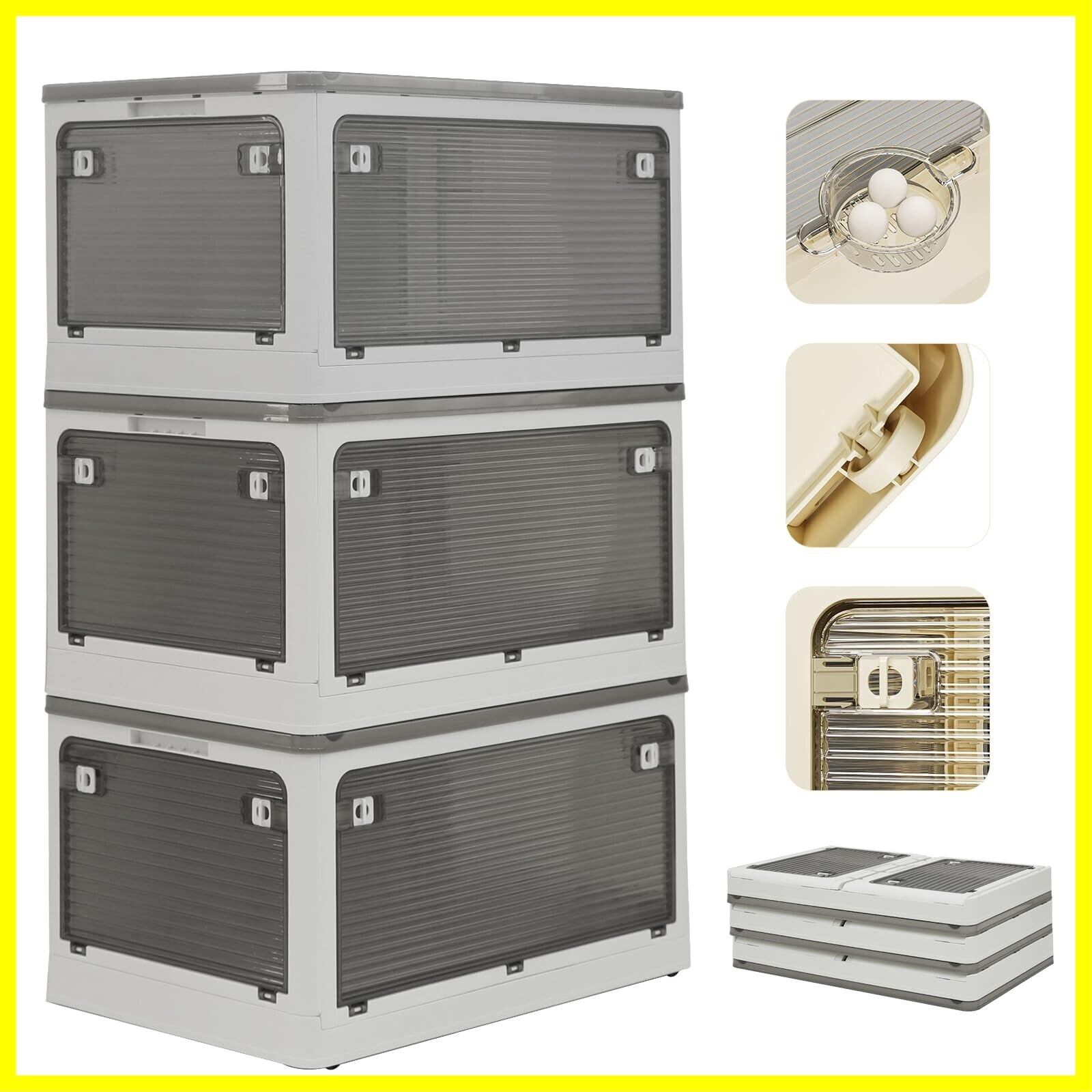 Freely 多機能折りたたみ収納ボックス 積み重ね可能 蓋付き 大容量 キャスター付き 防塵防湿防虫 ABS樹脂 家庭用/車載/アウトドア対応 5面開閉式 簡単組み立て 衣類・布団・本・食品収納 M(48×36×28.5)cm,49L