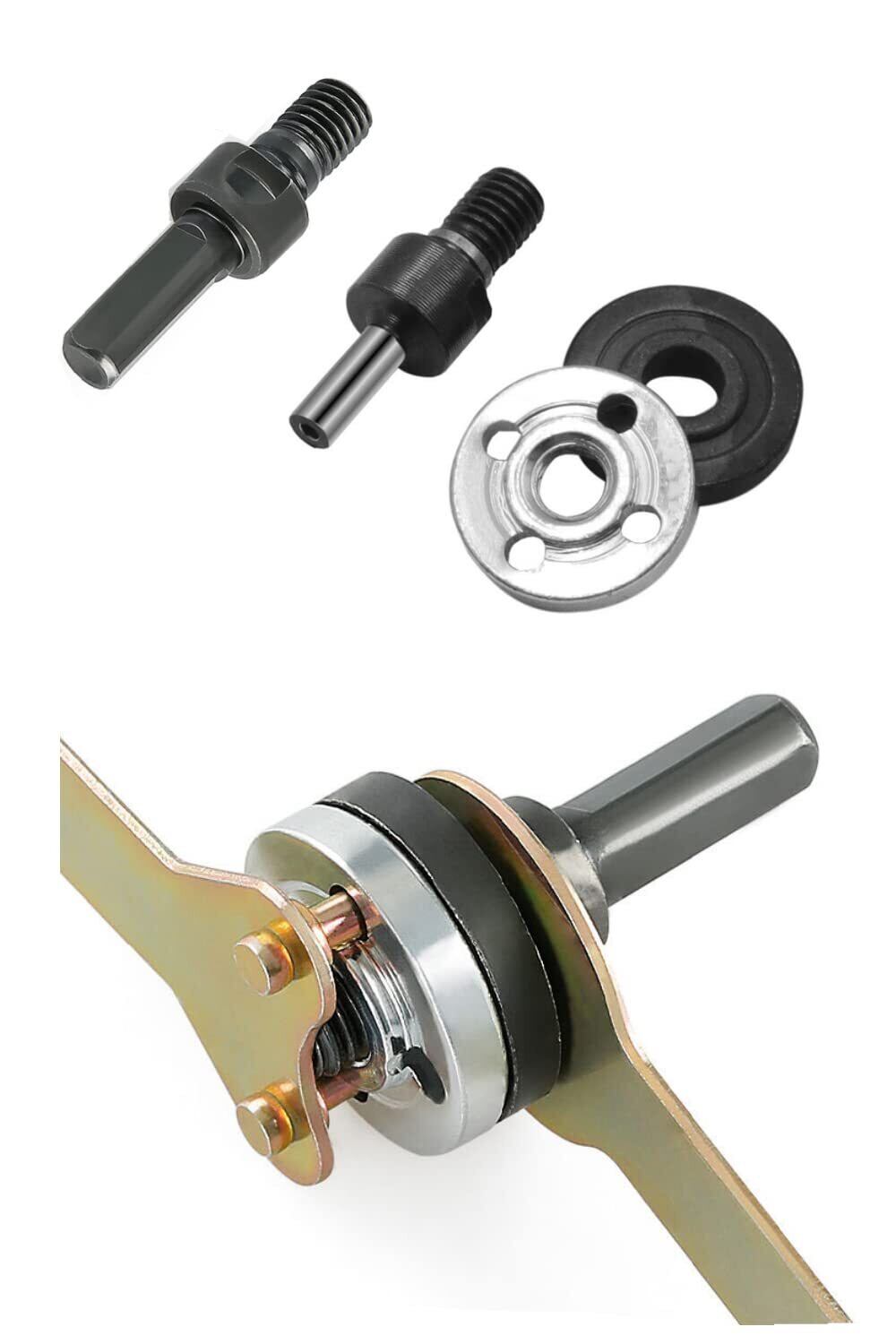 【用途】モーターの軸部とフレキシブルシャフトを接続する専用取り付け工具のセットです。切削、研磨、研削、ノコギリなどの用途に適しています。