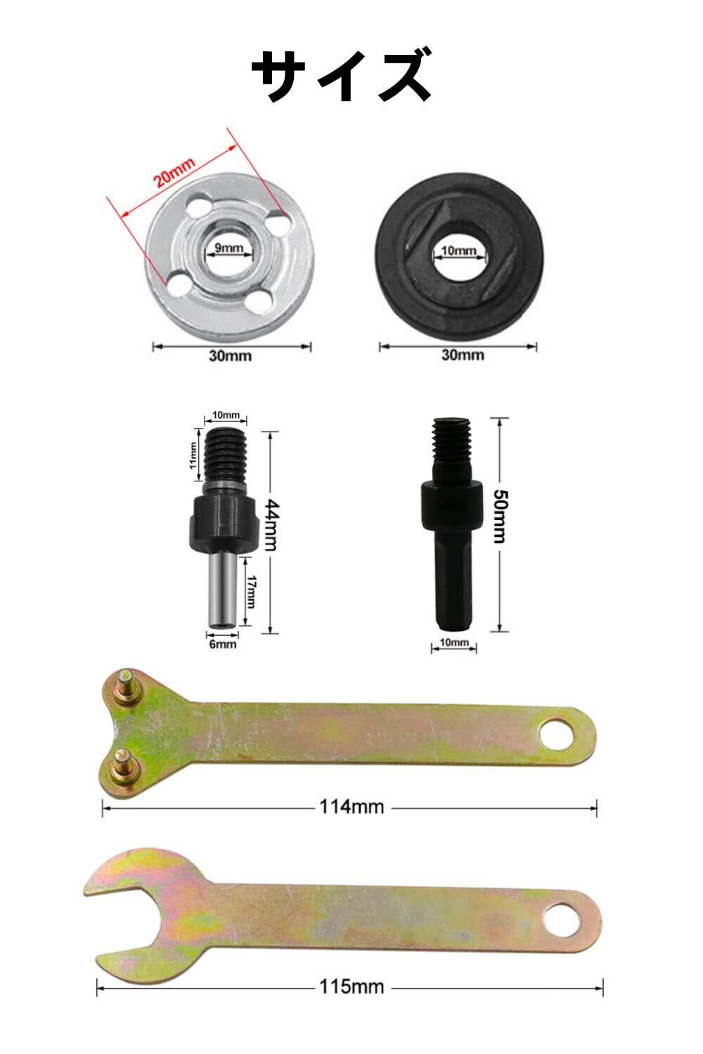 アングルグラインダーアタッチメント 10個セット 交換工具レンチ グラインダー用取付取り外し道具 内外周フランジ 研削ディスク固定用工具 多機能 アクセサリー