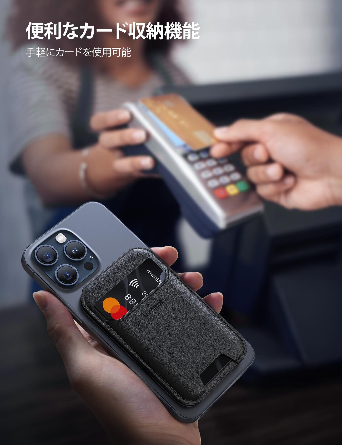 [Lamicall] 重さ改良 MagSafe対応 カード ケース スマホ スタンド : 3枚収納 magsafe 財布 マグセーフ ウォレット マグネット カード ホルダー カード収納 ヴィーガンレザー カード入れ 取り外し可能 角度調整 スタンド機能 財布 iPhone 17 Air 16e 16 15 Plus pro pro max/14/13/12 に対応 ブラック