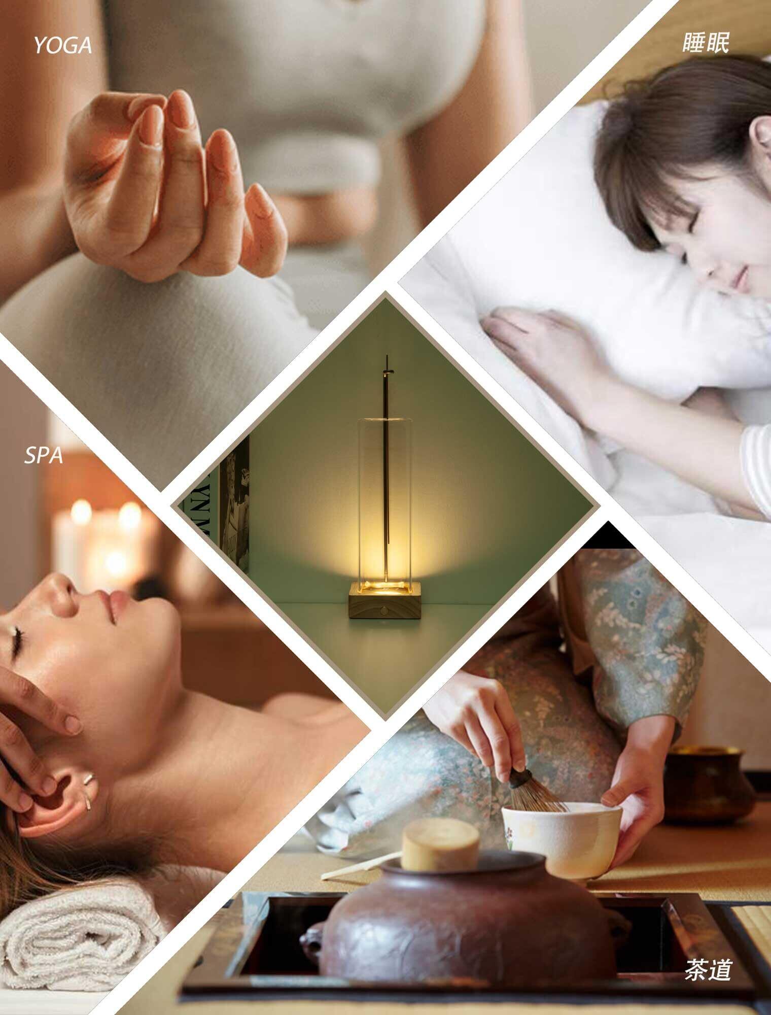 【書斎と寝室の香道道具】お香立ては書斎での穏やかな香り時間に、寝室でのリラックスタイムに最適です。防灰ガラスカップと LED 調光が香炉の実用性を高め、癒しの香道体験を日常に溶け込ませます。