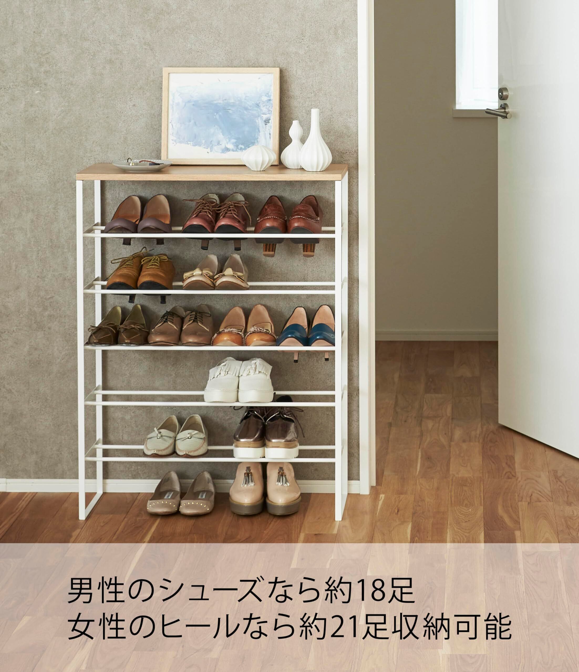 玄関に置いておけば、男性のシューズなら約18足、女性のヒールなら約21足収納可能。