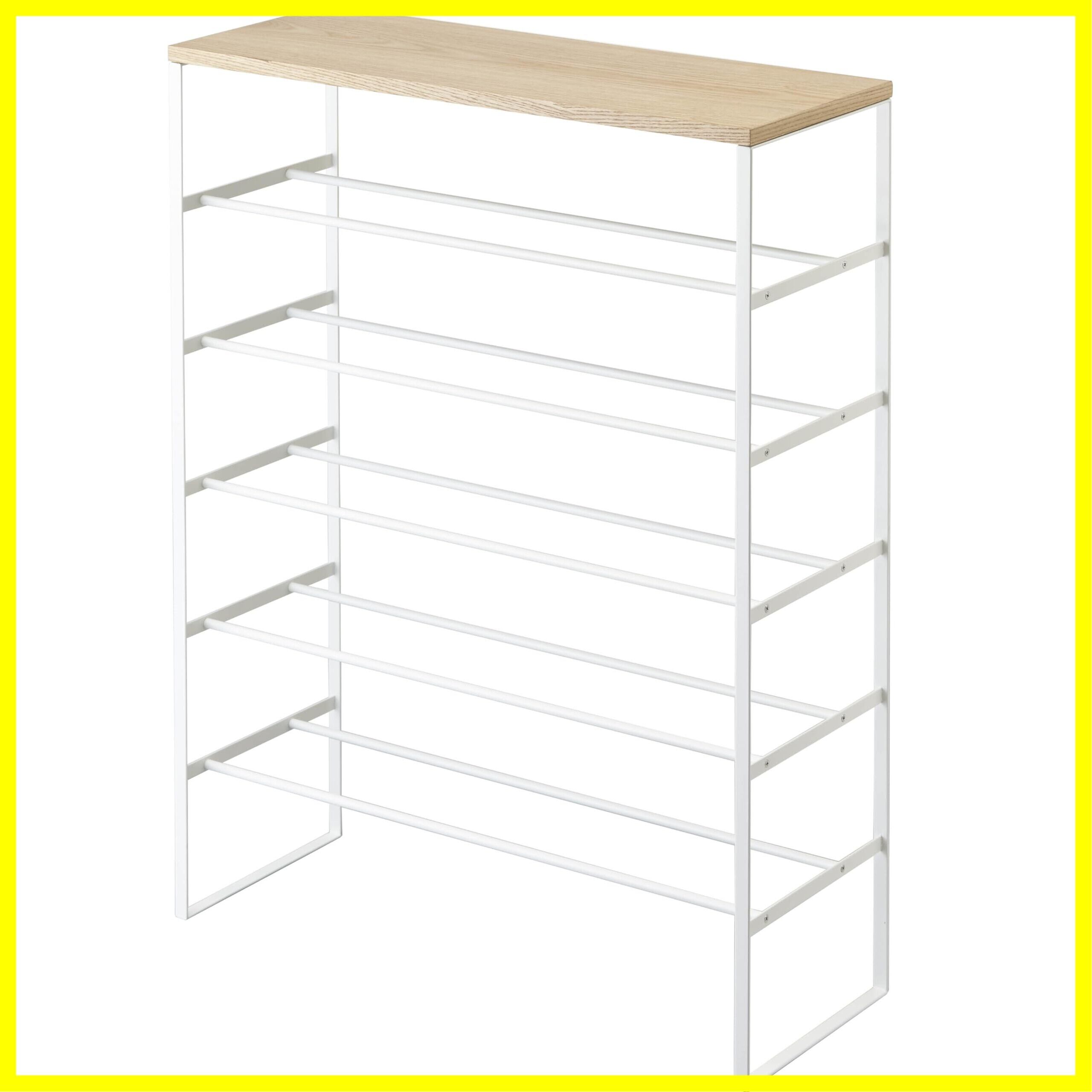 下駄箱からあふれた靴をまとめて収納できる天板付きのシューズラック6段。