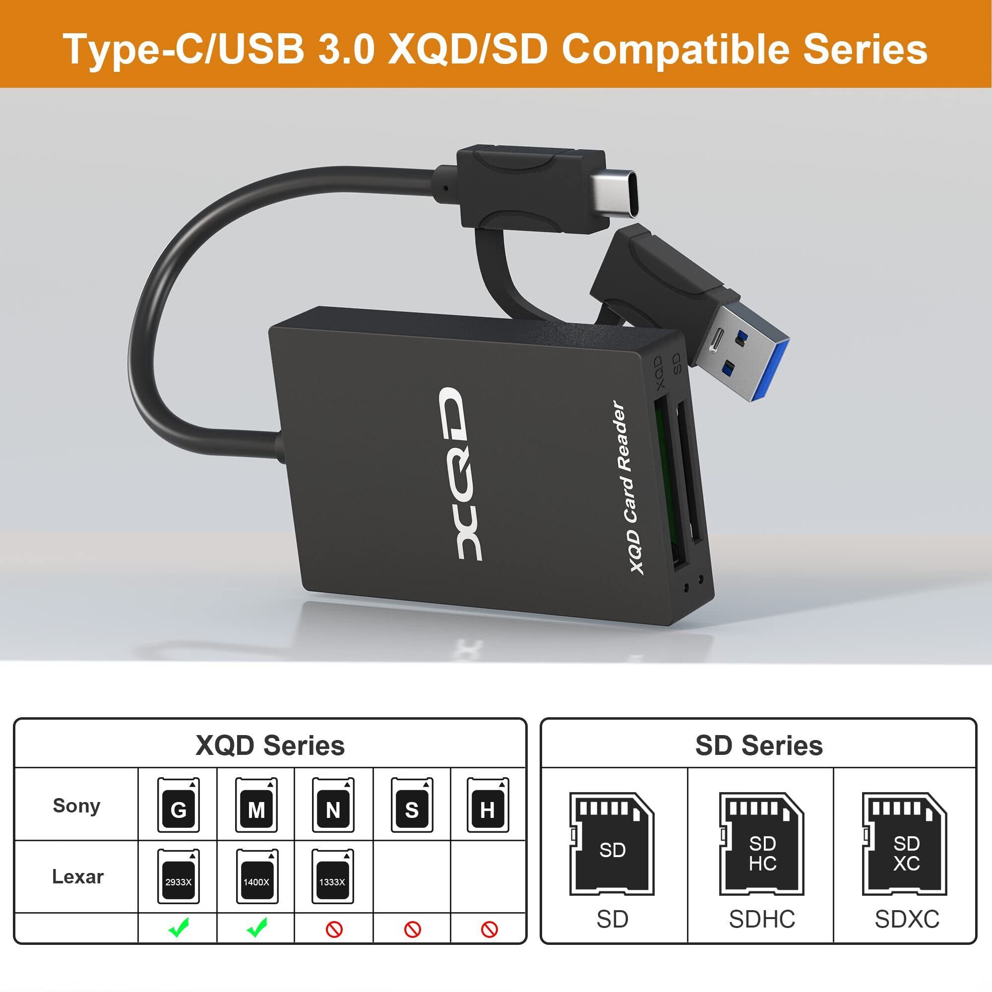 XQD SDカードリーダー、USB Type C to USB変換 XQD カードリーダー、SONY G/Mシリーズ、Lexar 2933x/1400x USBマーク XQDカードに対応、SD/SDHCカード対応 USB3.0 5Gbps 高速転送 Windows/Mac/Linux/Chrome OS と互換性 xqd リーダー