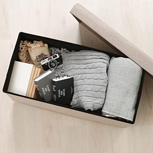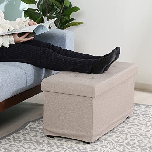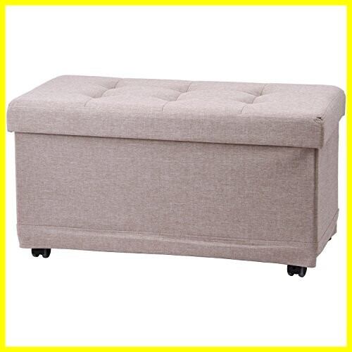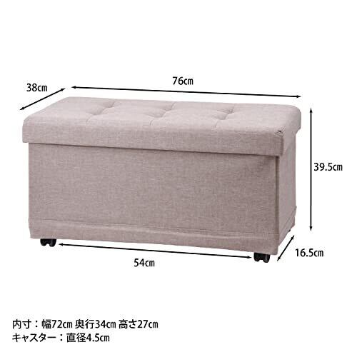 不二貿易 収納スツール ボックスベンチ 幅76×奥行38×高さ39.5cm ベージュ 折りたたみ オットマン キャスター付き ベルク 51303