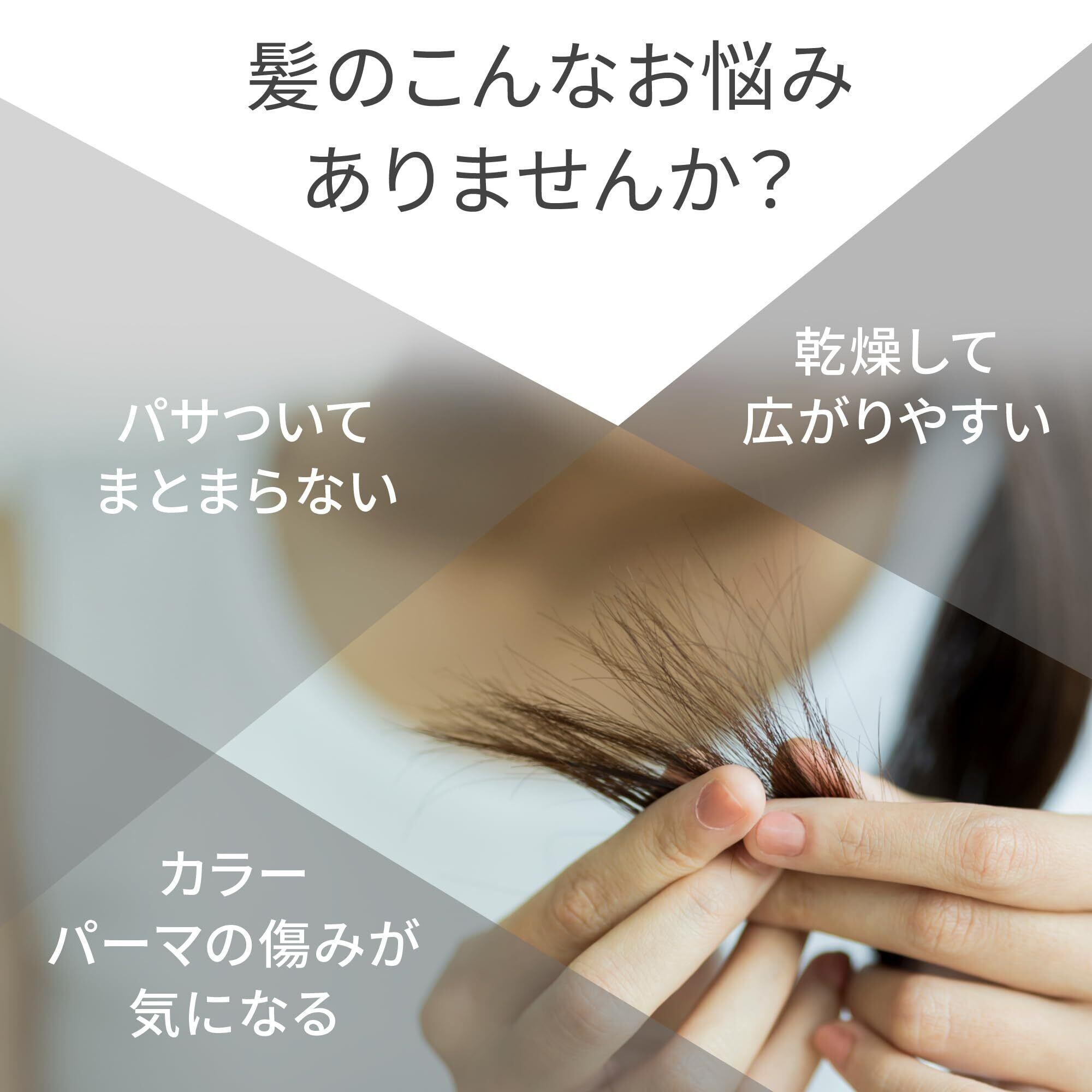 【商品の特徴】しっとり艶やか、手触りなめらかな髪へ導く髪の美容液。髪が太くまとまりにくい方・髪のツヤがなくパサつく方にオススメな洗い流さないヘアトリートメントです。