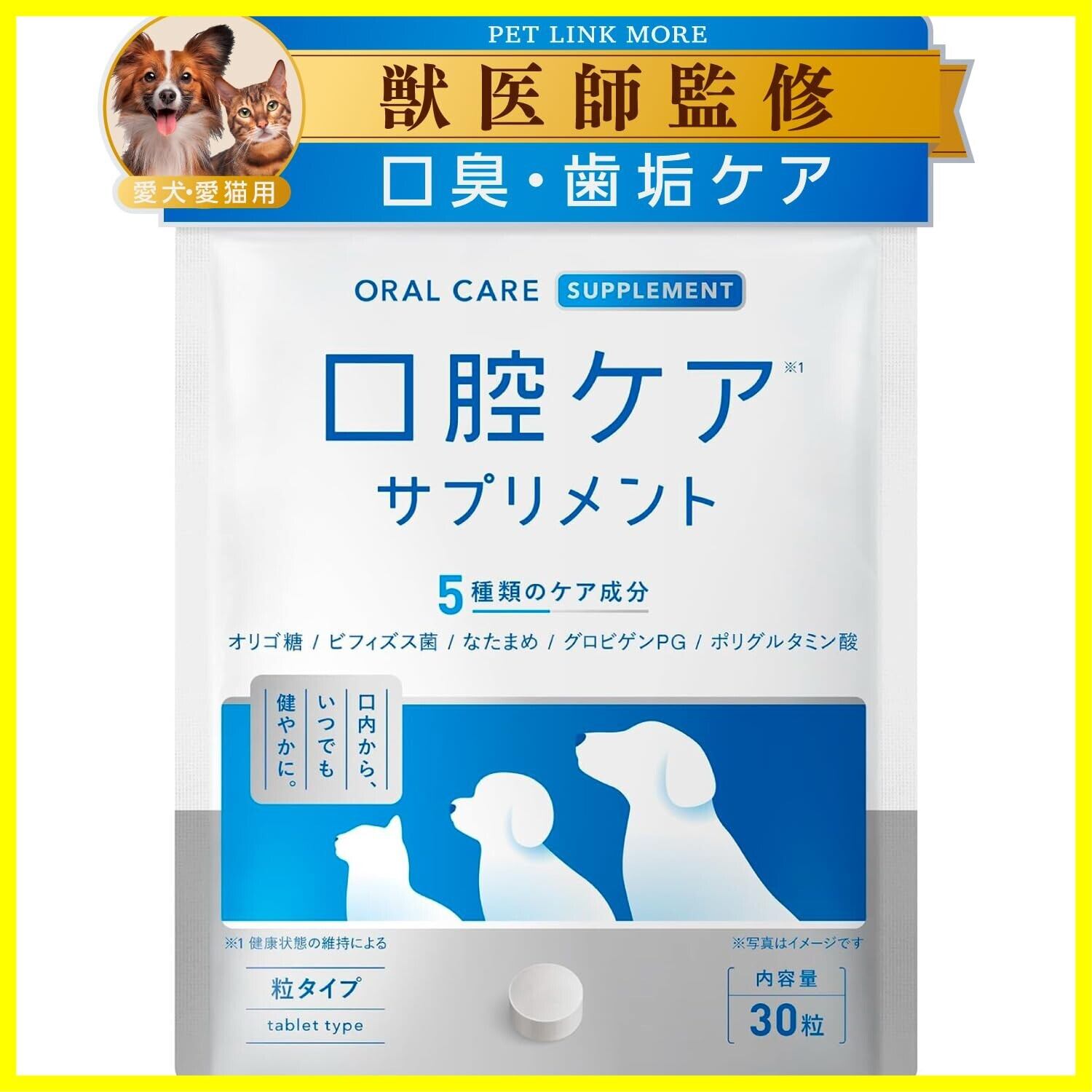 PETLINKMORE 犬猫用 口腔ケアサプリ 歯磨き 歯磨き粉 口臭 口内ケア 歯石 デンタルケア 国内製造 錠剤 30粒 (単品)