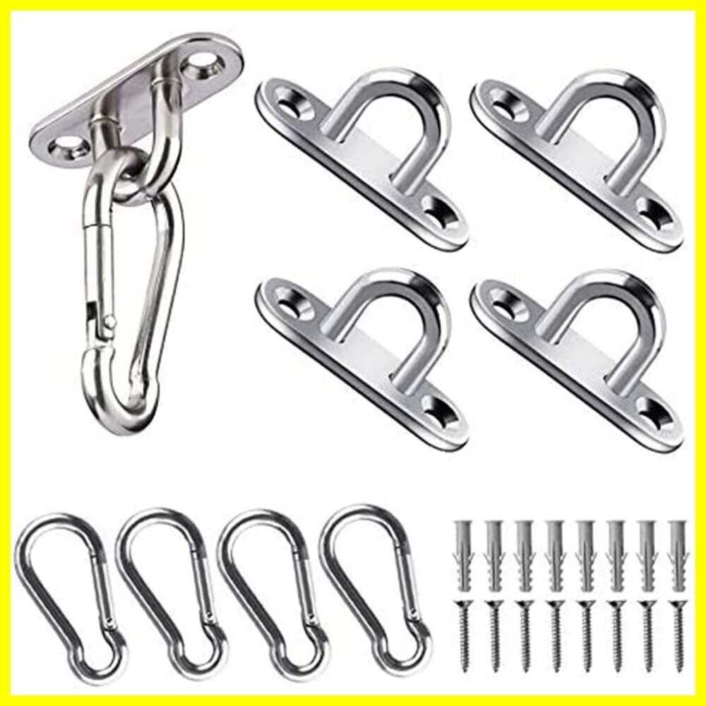 MEDUSHASHA パッドアイ カラビナ 天井 フック 壁 フック 厚さ5mm 304ステンレス製 長方形アイプレート U型 固定 金具 取り付け金具 耐腐食性 固定 止め 金具 高強度 丈夫 (パッドアイ4個+カラビナ4個+マッチングネジ)