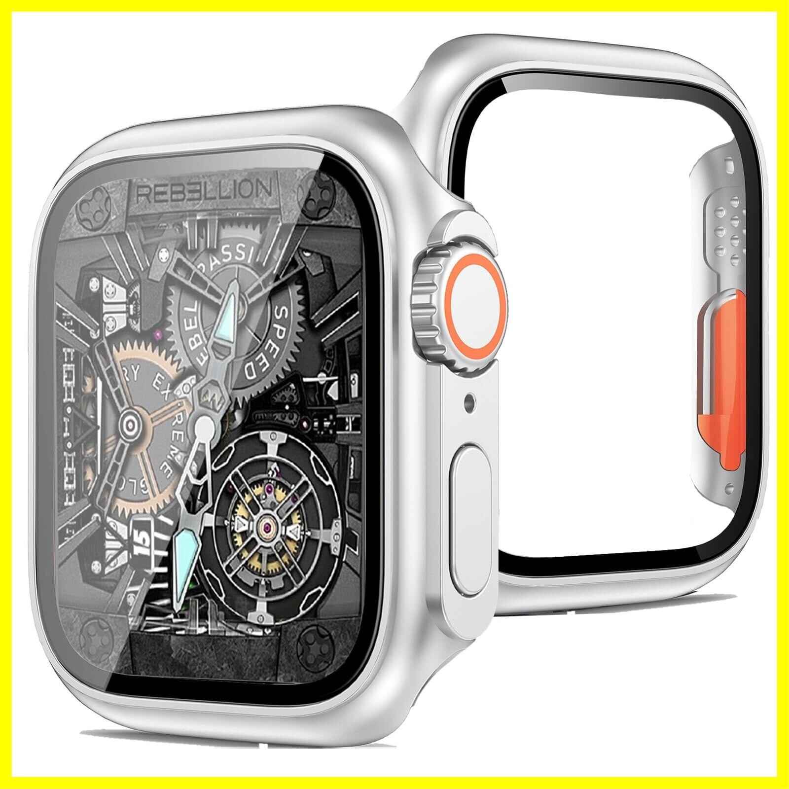 YAODLE Apple Watch ケース シリーズ 9/8/7 45mm と互換性があり 数秒で Ultra シリーズの外観に変換できます アップルウォッチ カバー 日本旭硝子材 キズ防止 軽量 強化ガラス アップルウォッチ 9/8/7 対応(45mm,シルバー)