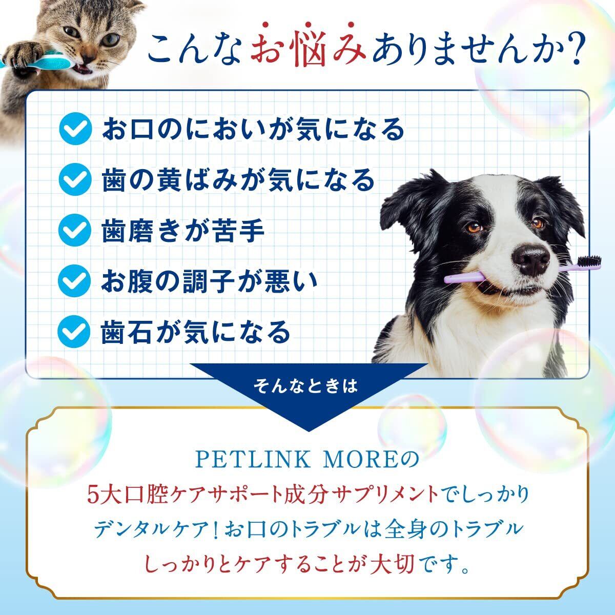 PETLINKMORE 口腔ケアサプリメントはいつものごはんにさっとかけるだけ 簡単に口腔ケアできるふりかけタイプのデンタルケアです。
