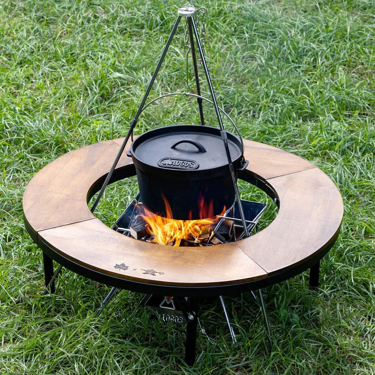 従来よりも開脚角を少し広げることで、対応するコンロが増えました。ピラミッドtakibi lにも対応します。
