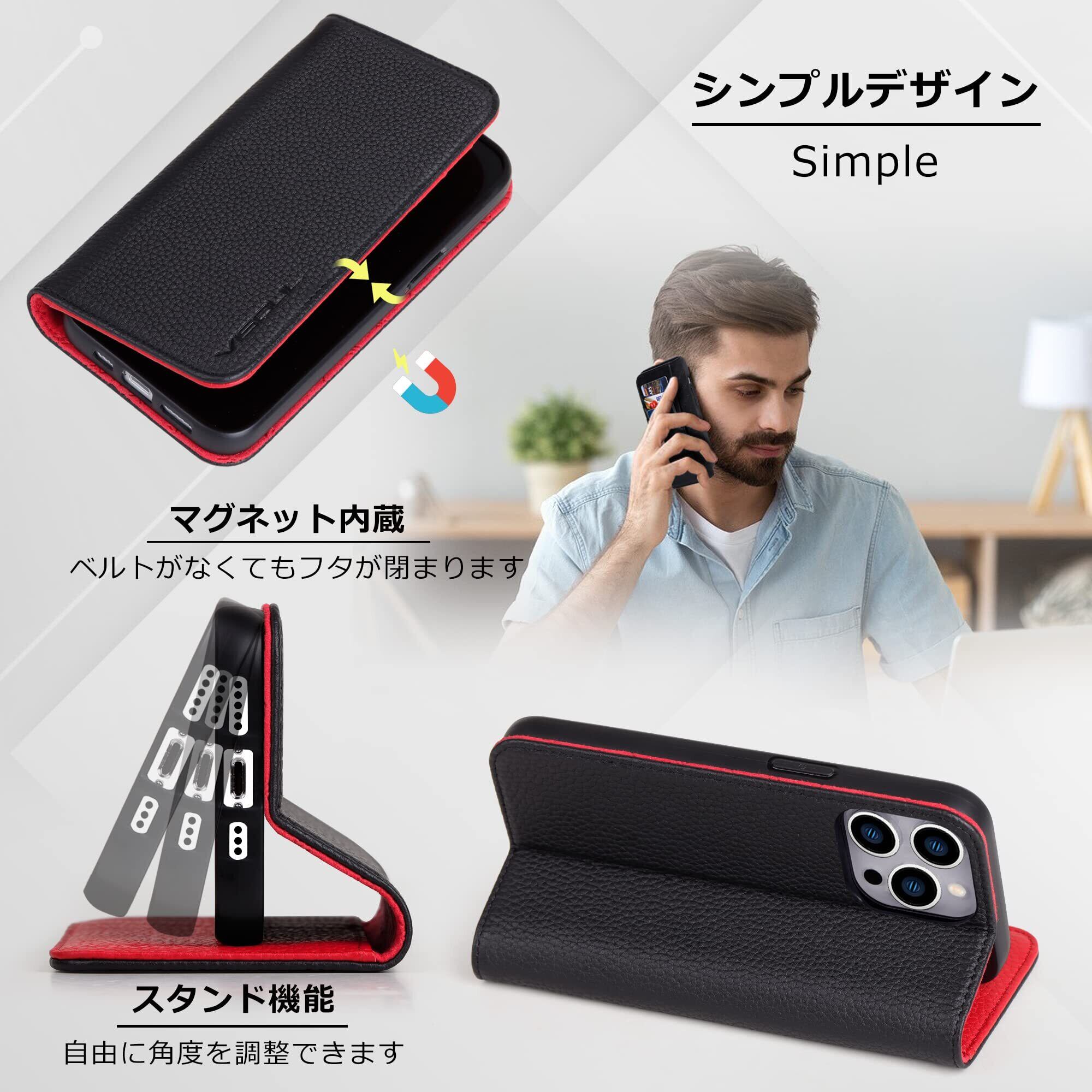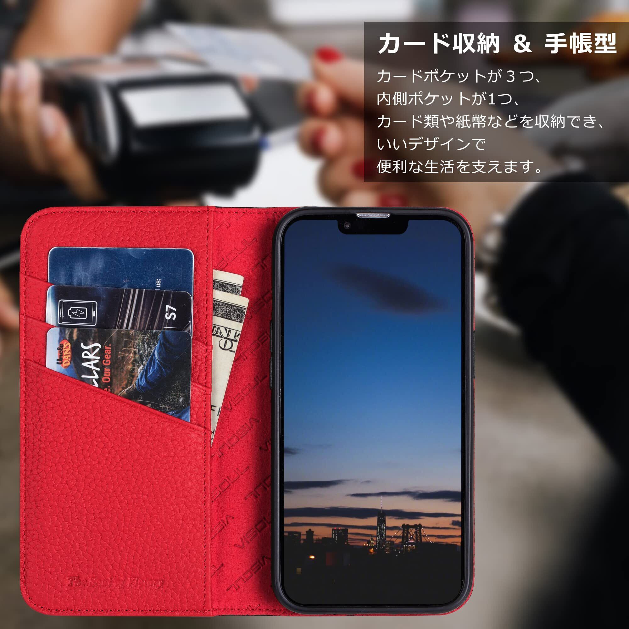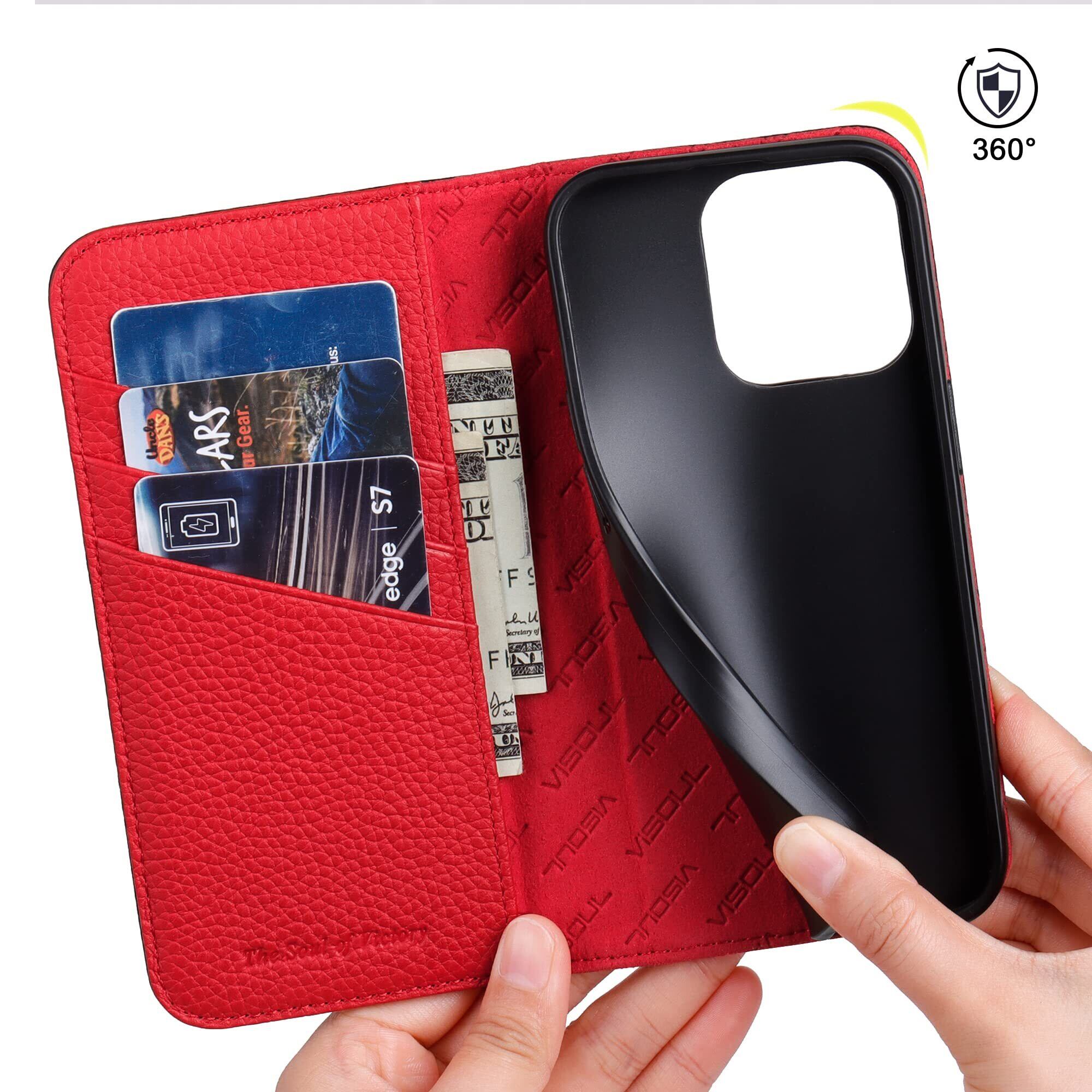 VISOUL iPhone 14 Pro ケース 手帳型 アイフォン14 Pro 手帳型 ケース 本革 レザー スマホケース カード収納 携帯ケース 全面保護 マグネット 横置きスタンド機能付き 柔軟なTPU素材 落下防止 iPhone 14 Proケース アイフォン14 Pro ケース 対応 6.1インチ iphone 14 Pro レッド