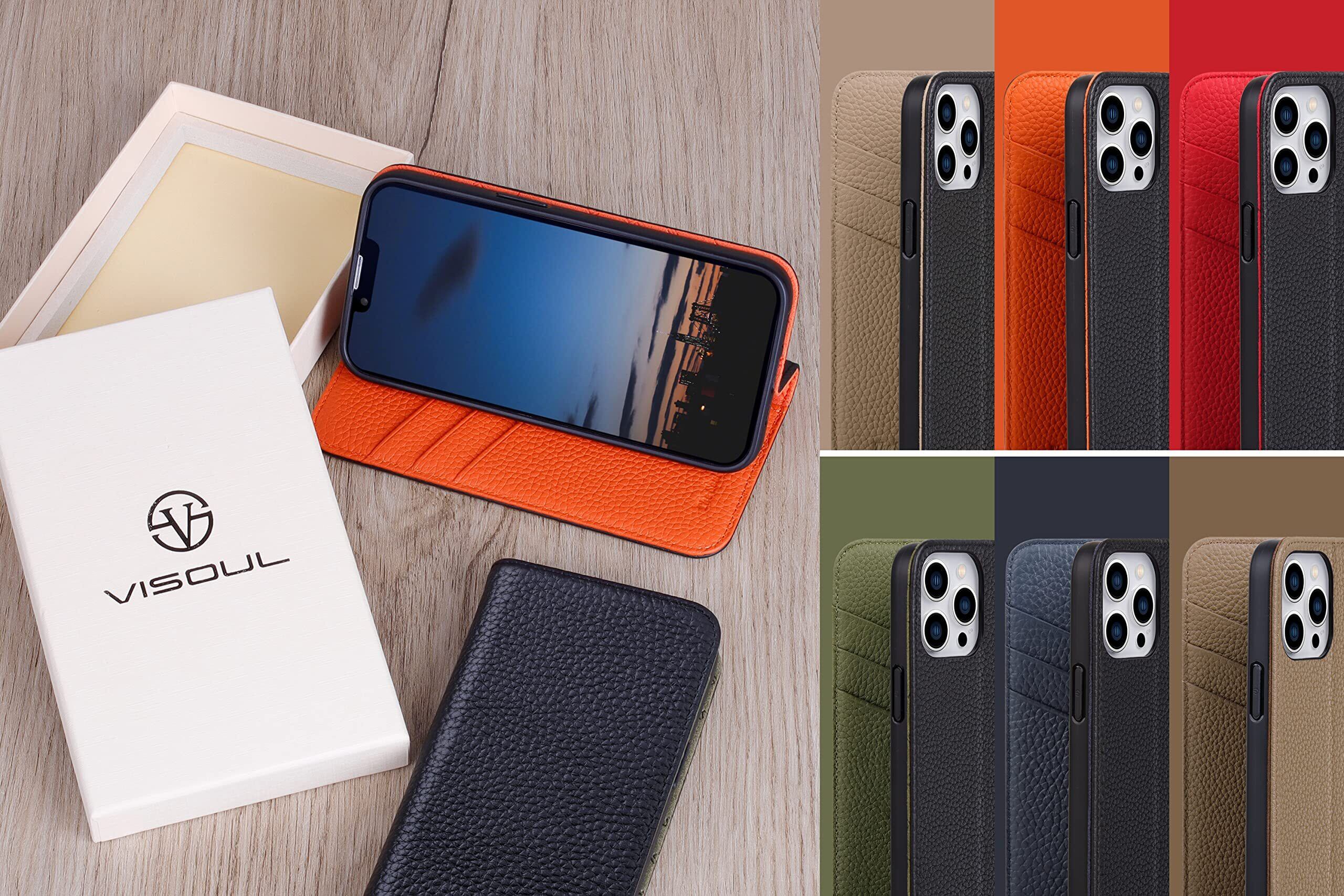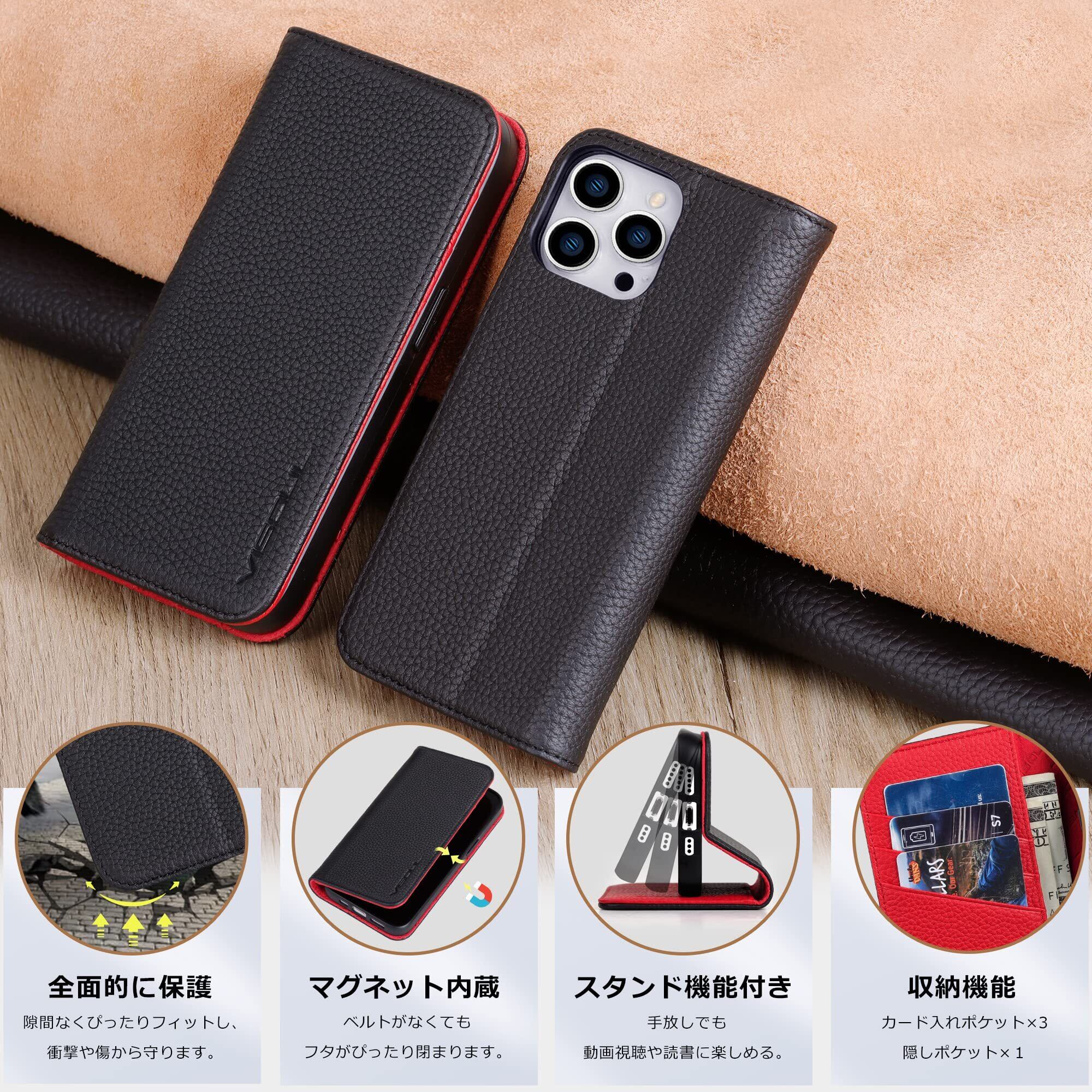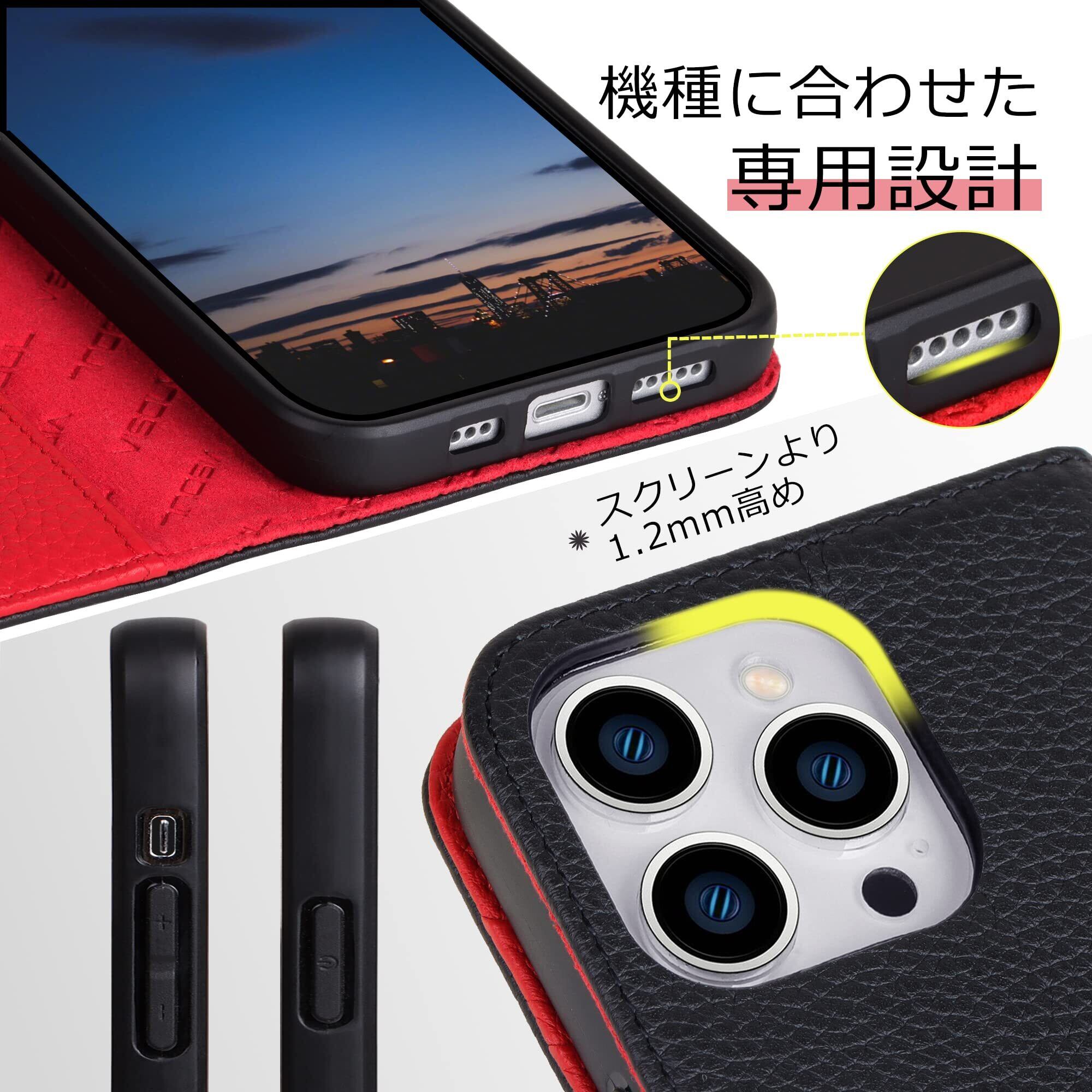 VISOUL iPhone 14 Pro ケース 手帳型 アイフォン14 Pro 手帳型 ケース 本革 レザー スマホケース カード収納 携帯ケース 全面保護 マグネット 横置きスタンド機能付き 柔軟なTPU素材 落下防止 iPhone 14 Proケース アイフォン14 Pro ケース 対応 6.1インチ iphone 14 Pro レッド