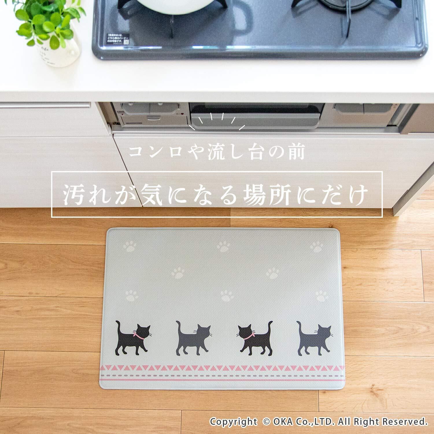オカ(OKA)) 拭ける洗面台マット 約45cm×70cm グレー(キャット)(拭くだけ PVC ビニール) 4548622743906