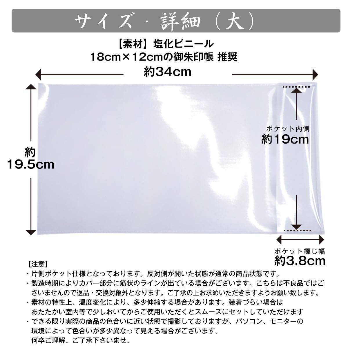 御朱印帳 カバー 透明 サイズ 18x12 金襴 御朱印帳 対応 ビニール 朱印帳 御朱印帳カバー (Lサイズ)