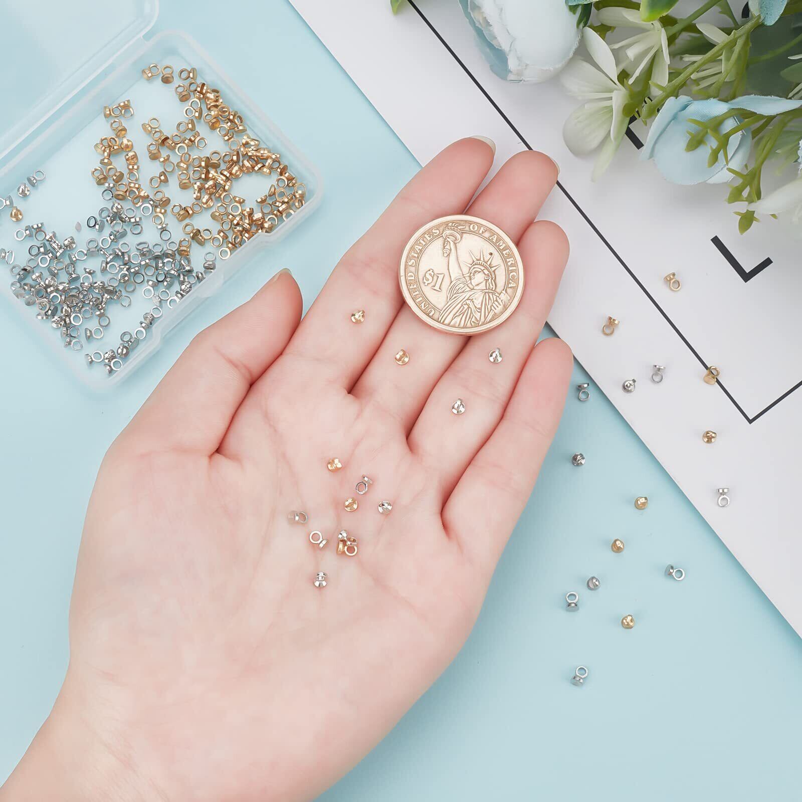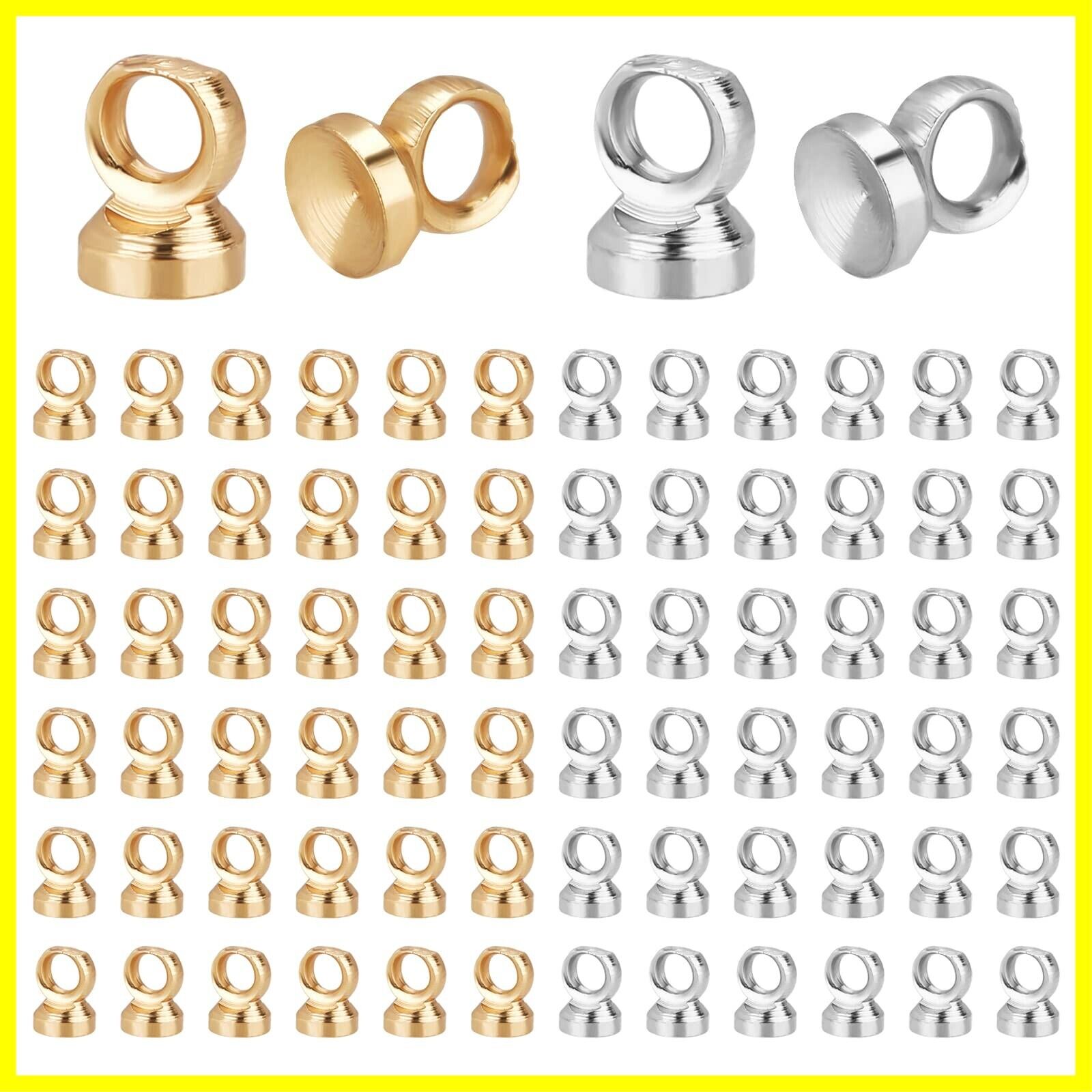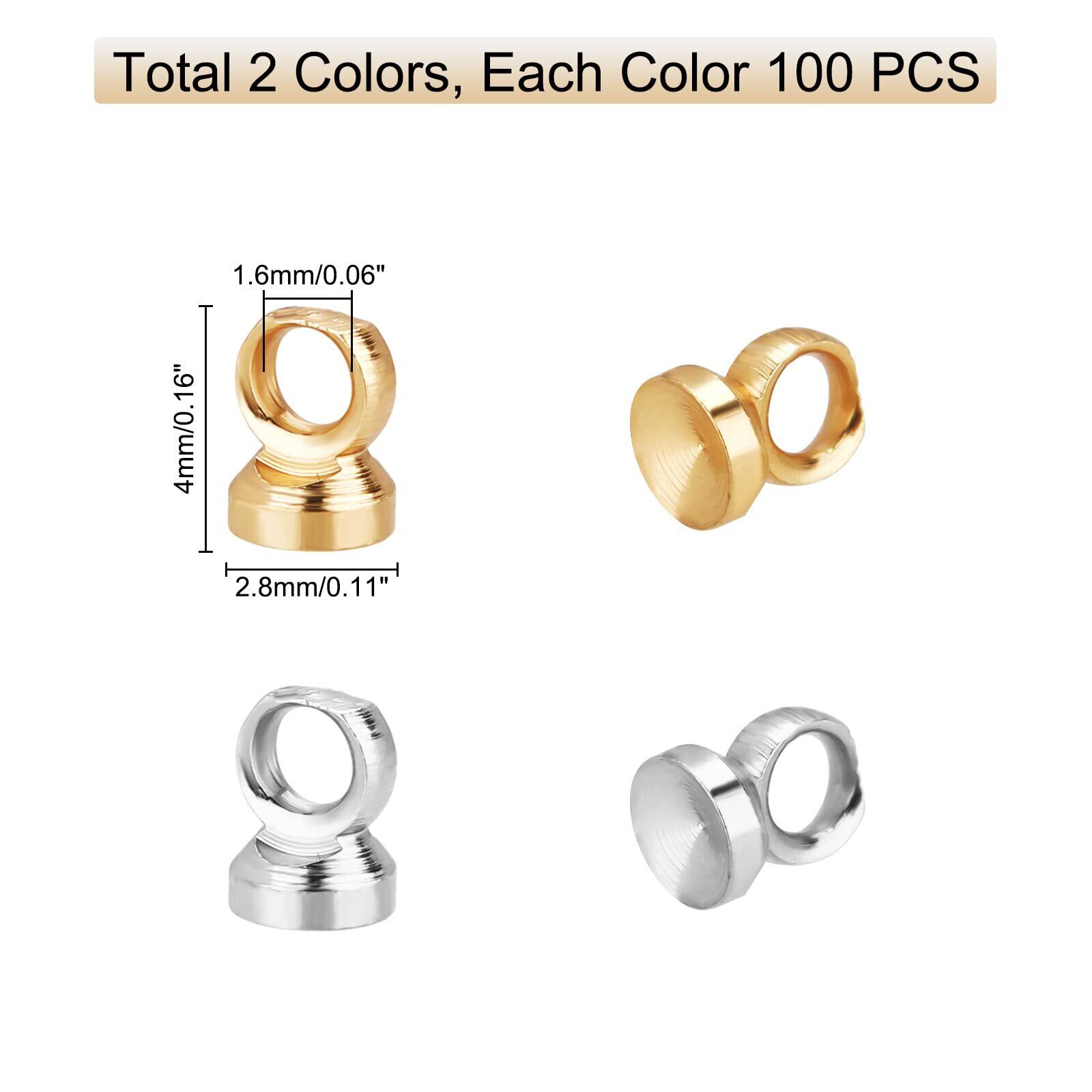 PH PandaHall 約200個セット ヒートン ヒートンキャップ ビーズキャップ 2色 ピンなし カン付き イヤリングパーツ レジンアクセサリー 丸ヒートン 接合金具 アクセサリーパーツ チャーム取付カバー ペンダント接続金具 ハンドメイド 手芸用品 クラフト 金具 ゴールド シルバー ケース付き
