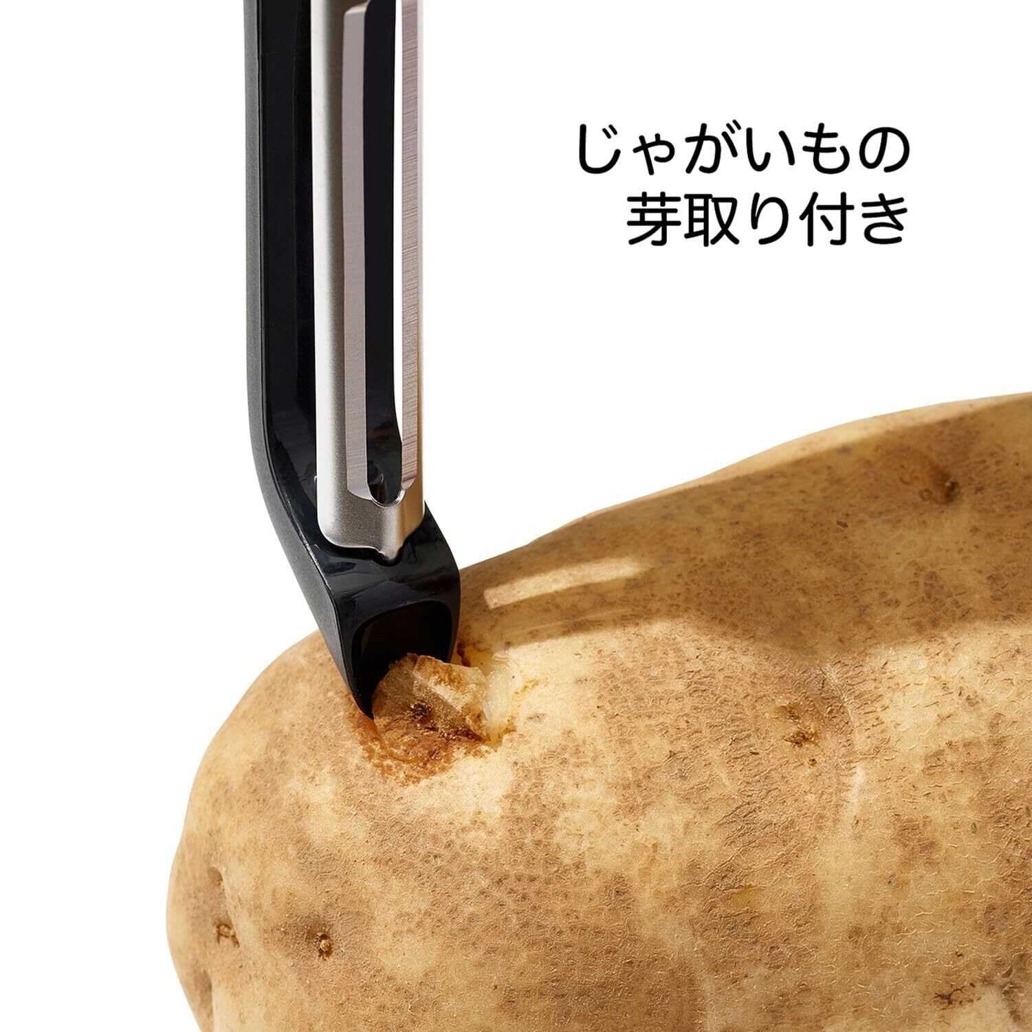 シャープでよく切れるステンレススチールの刃で、さまざまなフルーツや野菜の皮をスルスルと剥くことができる