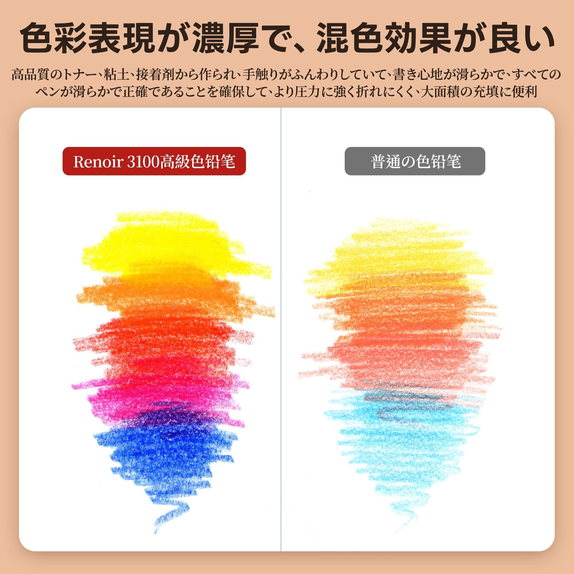 【色が豊富で表現効果が高い】この色鉛筆セットは、Marco Renoir 3100高級美術油性色鉛筆で、色が鮮やかで豊満で、手触りが油もちで滑らかである。