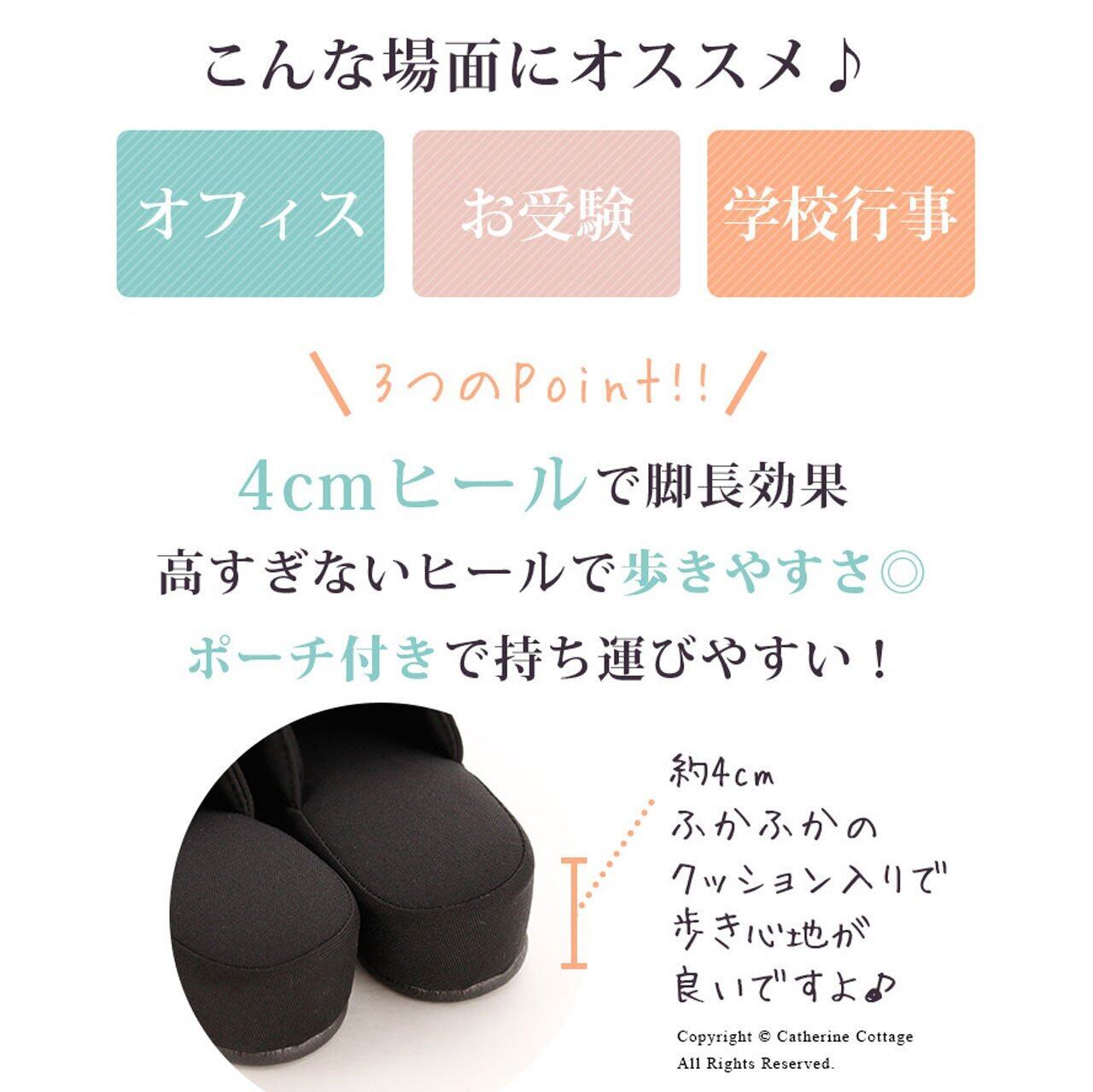 ヒール付きで美脚脚長効果 学校行事、お受験、オフィスでスマートに履きこなす女性用携帯スリッパ。