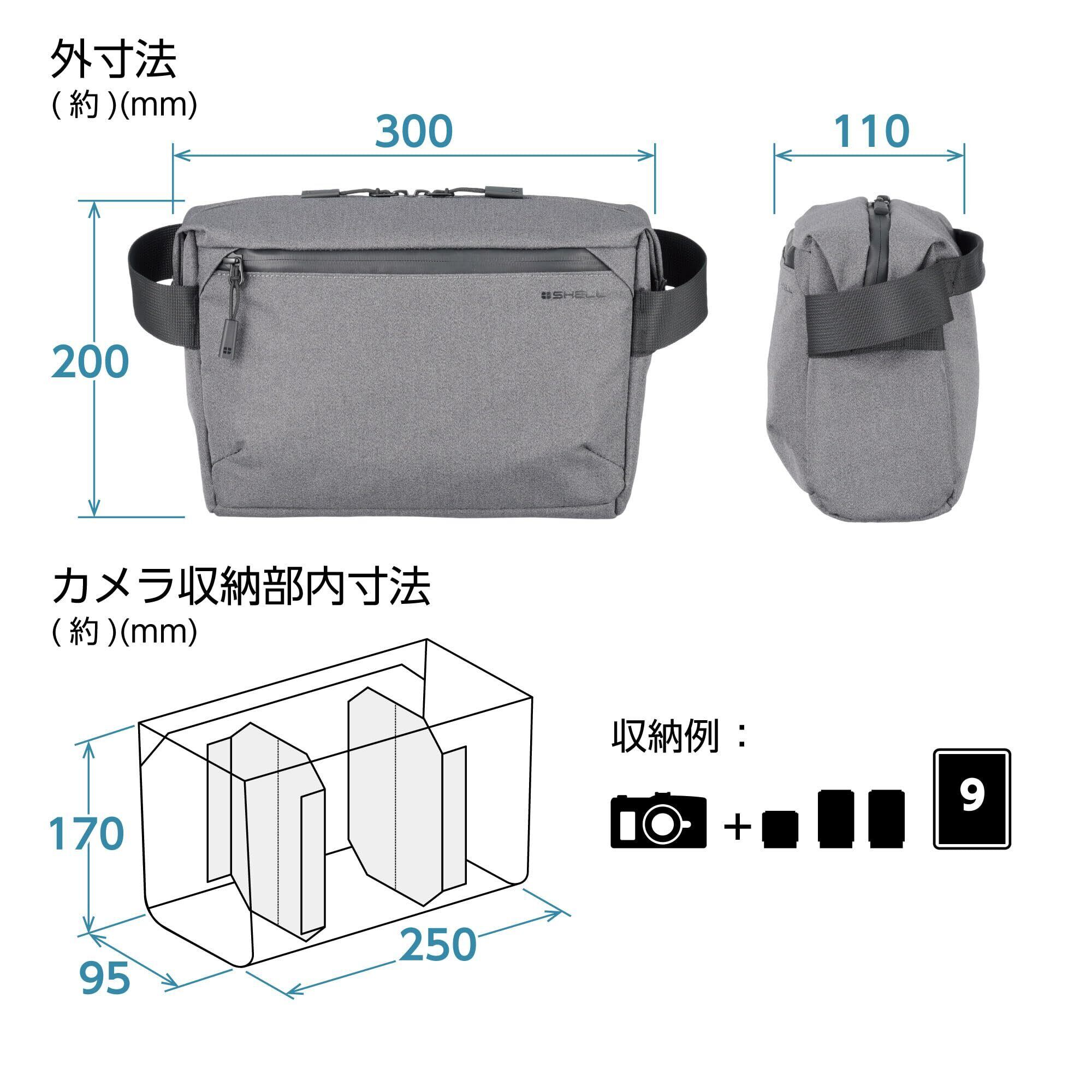 ●カメラ収納部内寸法:約W250×H170×D95mm、●PC収納部参考収容寸法:約W240×H160×D10mm、●外寸法:約W300×H200×D110mm、●容量:約4L、●重量:約340g