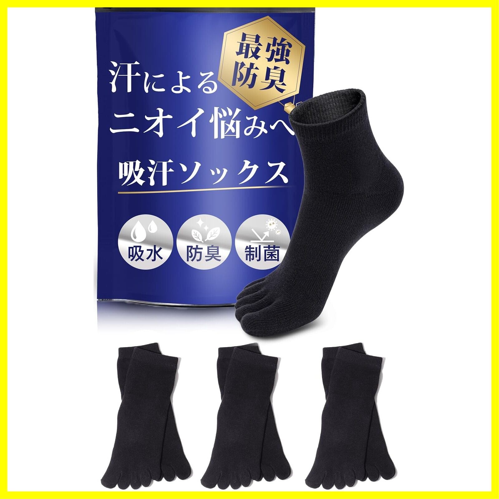 [Lacalm Feet] 5本指ソックス メンズ 汗っかき用防臭 多汗症 中厚手 吸水 ビジネス 綿 銀イオン 長持ち 3足セット