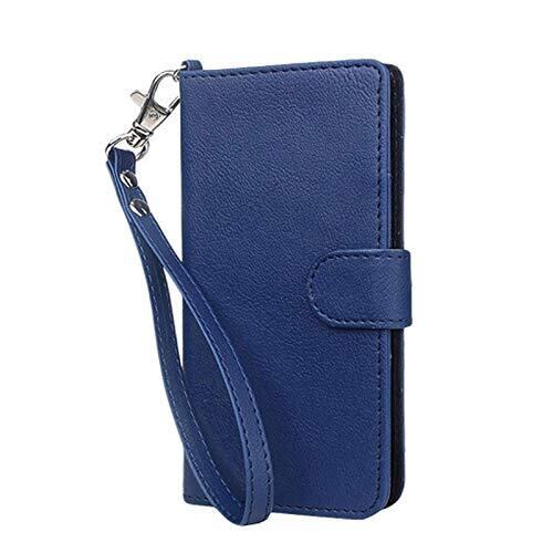 wisers らくらくスマートフォン F-42A / me F-01L 対応 手帳型スマホケース (ダークブルー) 着脱しやすい (カードホルダー/スタンド機能付き) ストラップ 2種付き (ハンドストラップ/ネックストラップ)