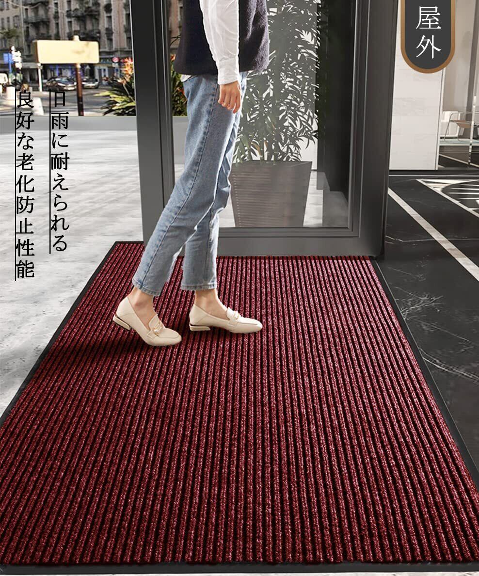 【泥落とし、吸水】屋内、屋外でお使いいただける玄関マットです。表面の凸凹が屋内に持ち込みたくないホコリ汚れや水などをしっかり捕らえ、吸収する機能的なマットです。長い梅雨の日でも大雪の日の中でもフロア汚れを最小限に抑えます!また、マットが抗菌性・防臭性、一年中も快適にご使用いただけます