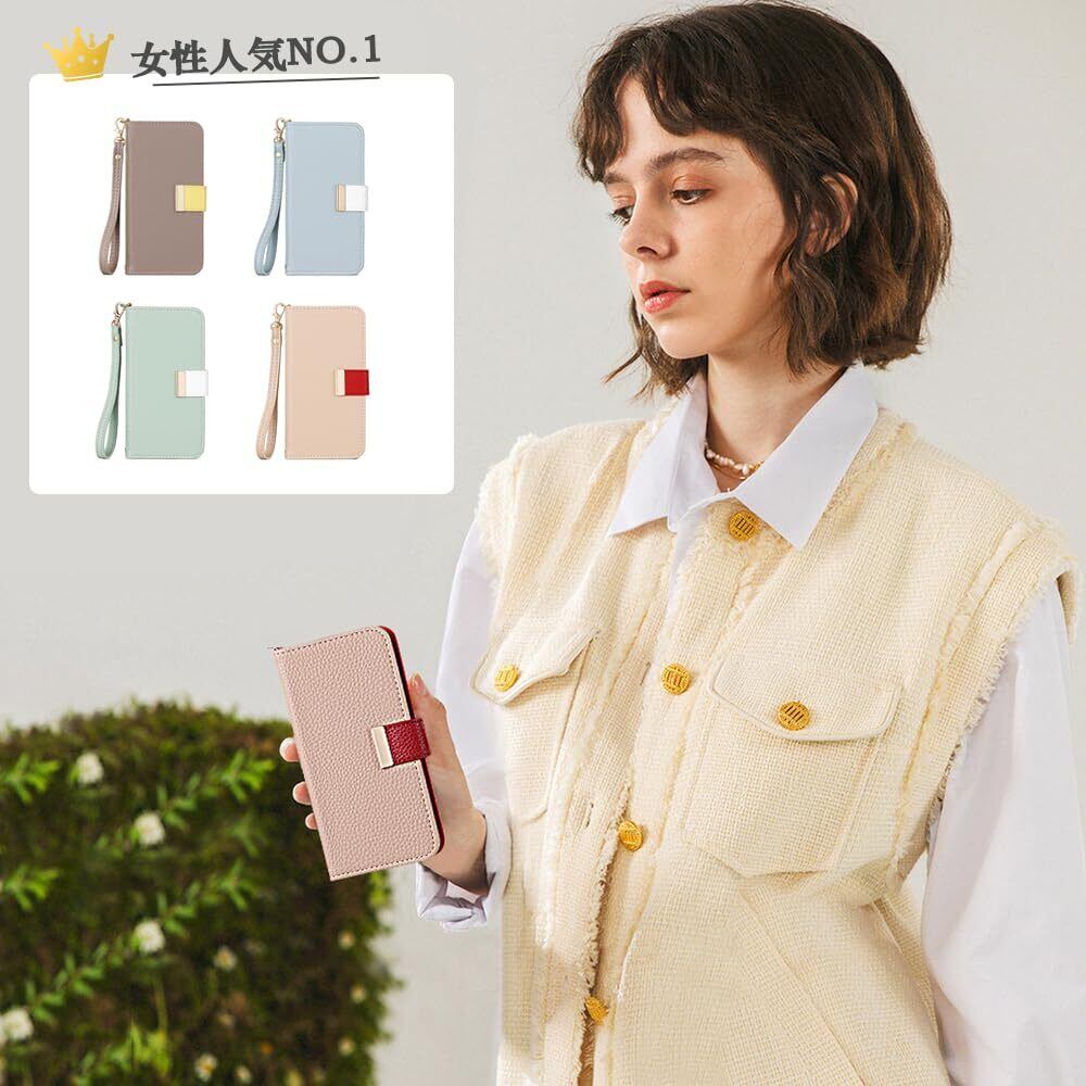 【人気の理由】①大人かわいいカラーを取り揃えたツ-トンカラーケース 。②本を開いたような可愛らしさ&スマホ全体を保護できる安心感。③マグネットホックを採用、カードの落下を防ぐため、しっかりと閉じる。