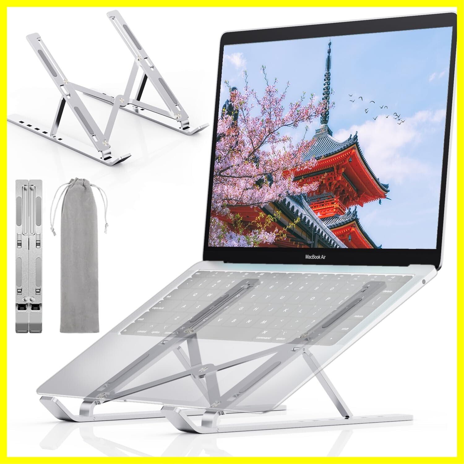ZEEKK ノートパソコンスタンド PCスタンド アルミ合金 タブレットスタンド 折りたたみ 軽量 安定 放熱 滑り止め 人間工学設計 高さ 角度6段階調整 収納可能 在宅/出勤勤務 持ち運びに便利 10.5-17インチまで対応