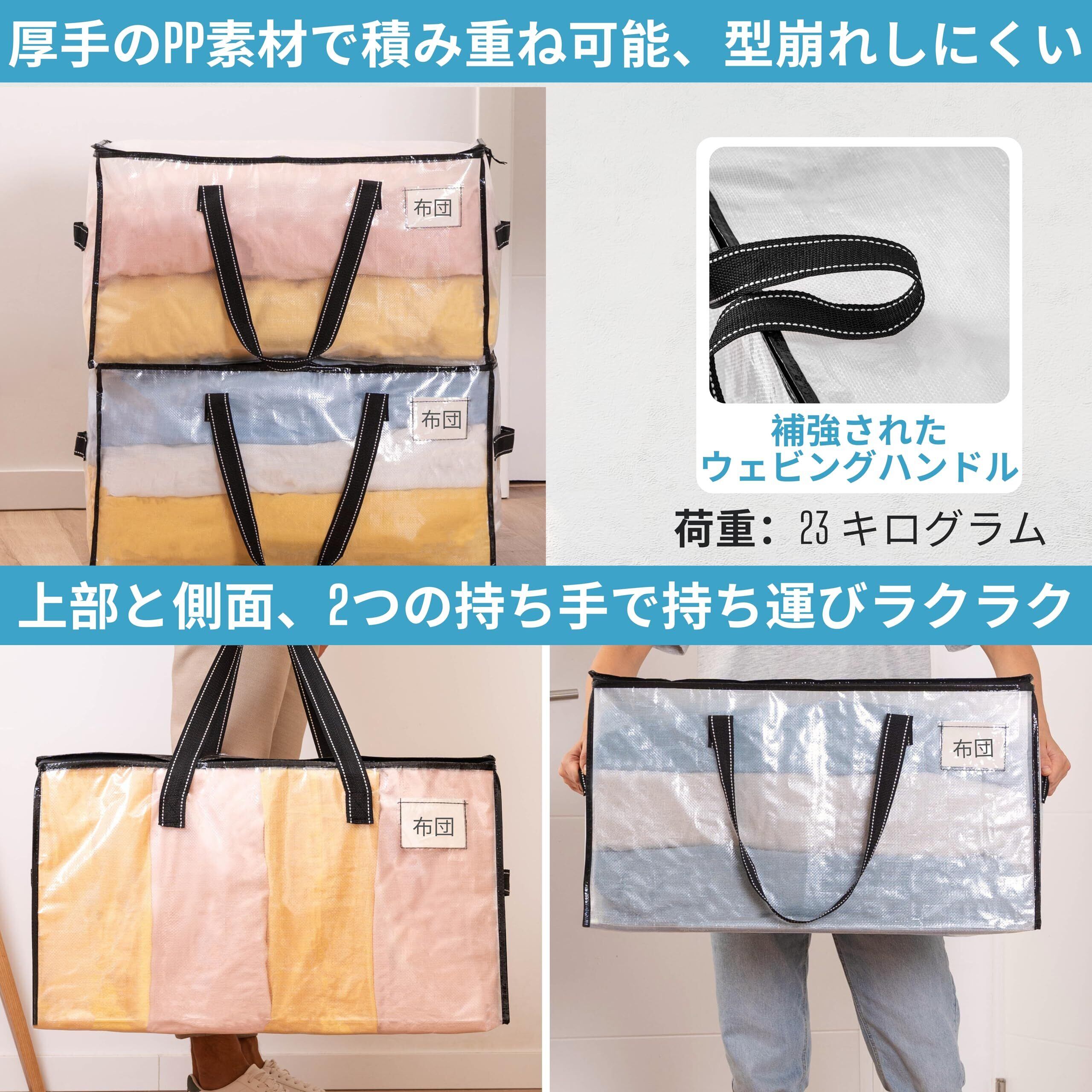VENO 布団収納袋 引越しバッグ 大容量 引越しダンボールの代替 高耐久 耐水 透明窓付き ダブルジッパー付き 折りたたみ可能 衣装ケース 布団袋 洋服収納 引っ越し キャンプ 旅行 (クリア 2枚セット)