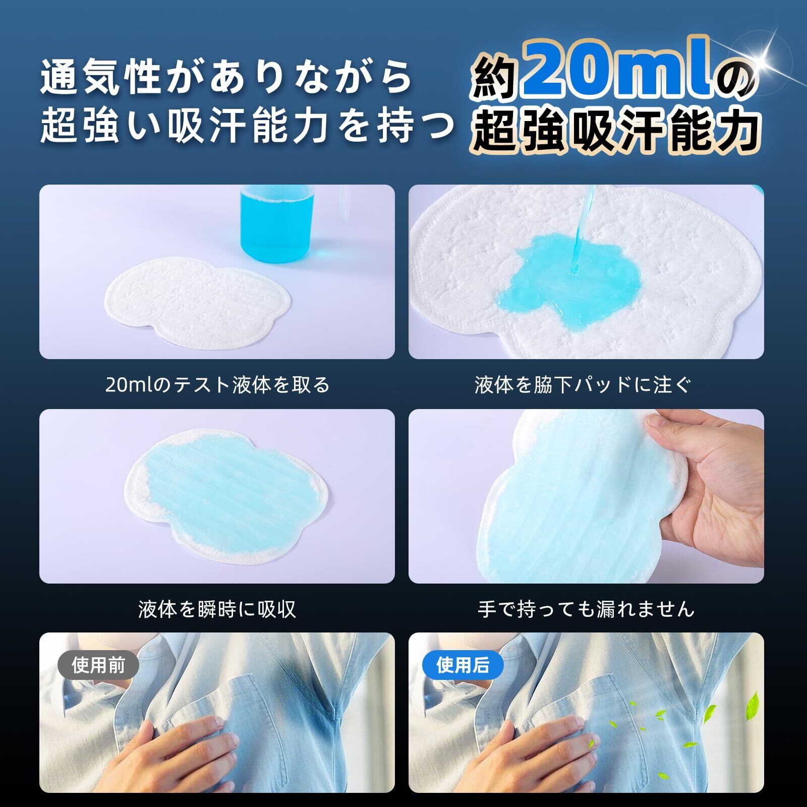 【史上最大サイズ・急速吸収】13*15.4cmの超大サイズで、広範囲の粘着剤と3層構造が大量の汗を素早く吸収し、20mlの汗水も簡単に吸収します。