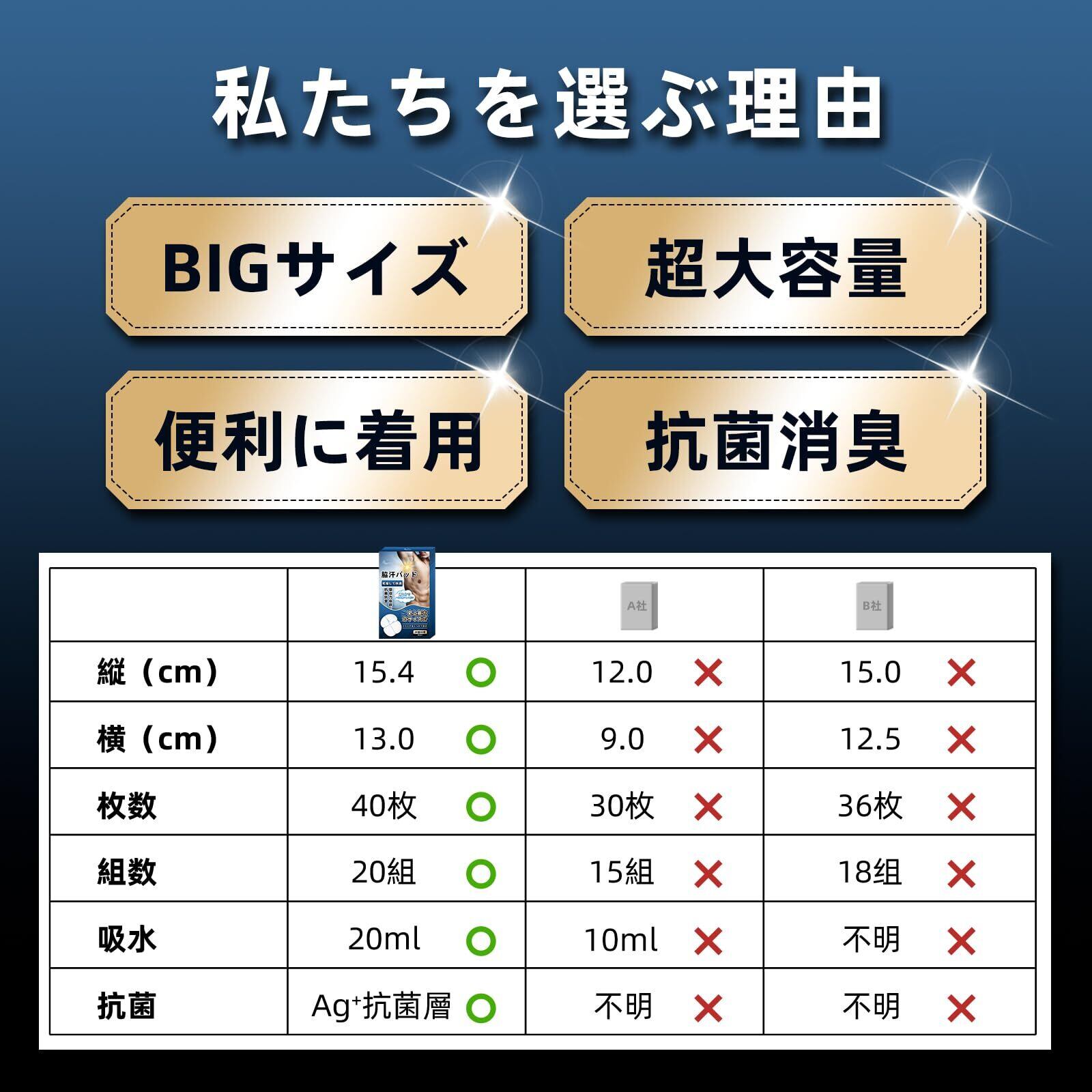 VICSUN 40枚 脇汗パッド メンズ 大判サイズ 抗菌防臭 汗取りパッド あせわきパッド 薄型快適 (特大)