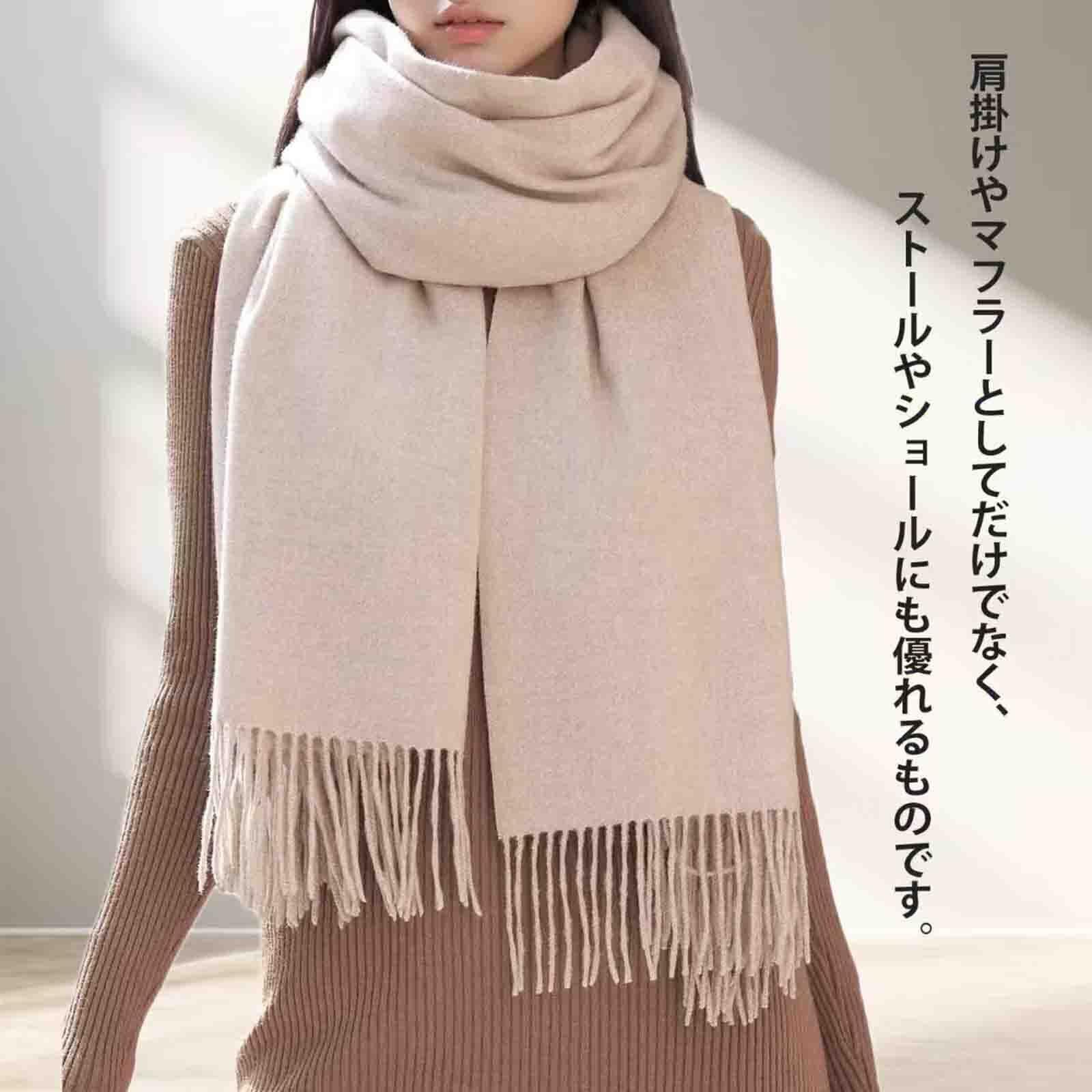 なめらかでカシミヤタッチの肌触りに優しい大判レディースマフラー。