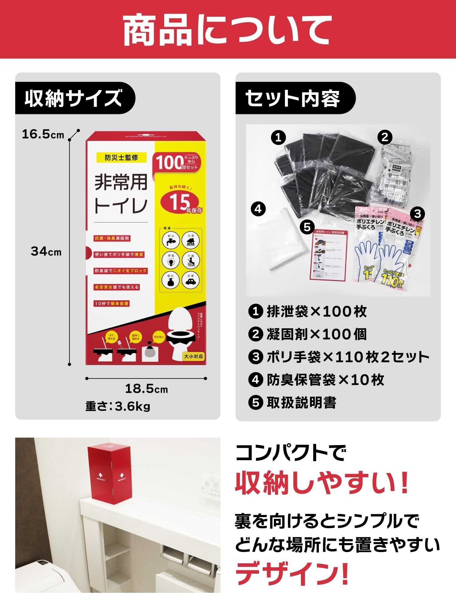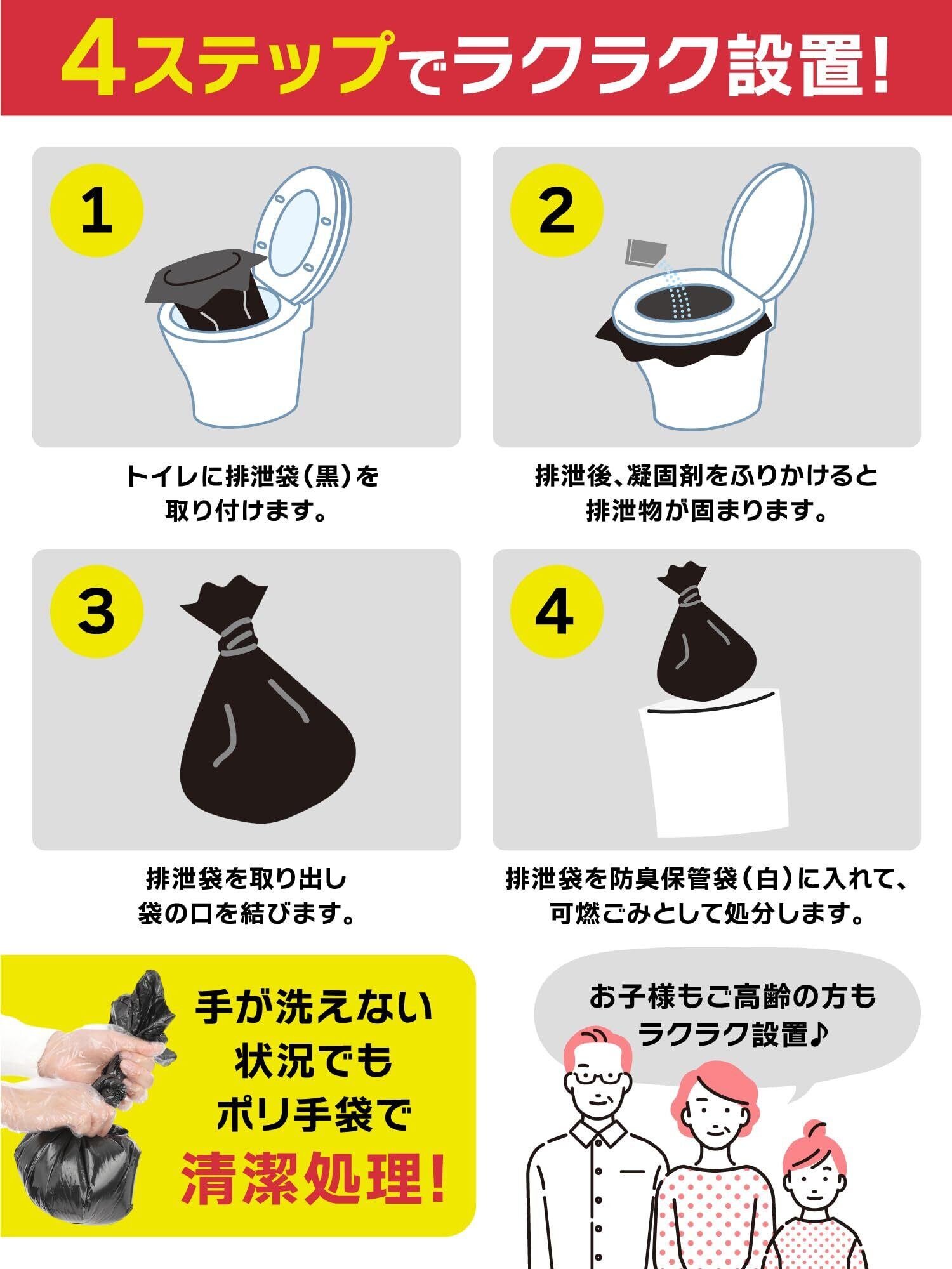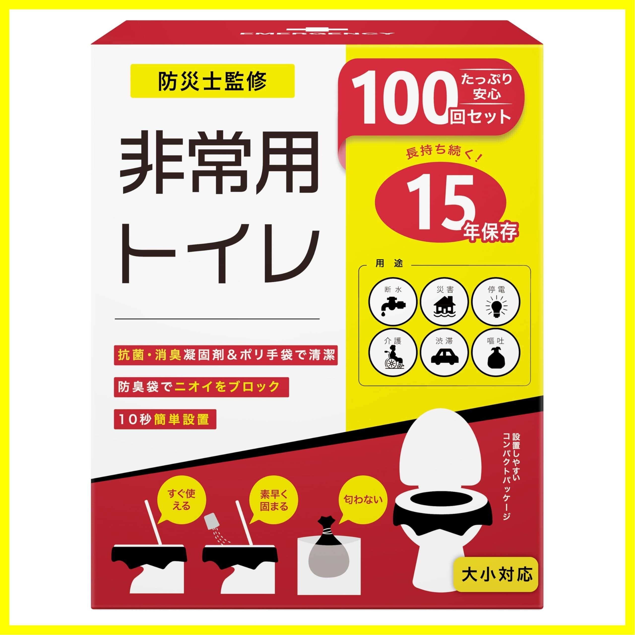 非常用トイレ100回分セット 簡易トイレ 15年保存 消臭・抗菌凝固剤 ポリ手袋 防臭袋 10秒スピード設置 大小対応 断水対策 携帯トイレ 防災グッズ 防災防犯ダイレクト