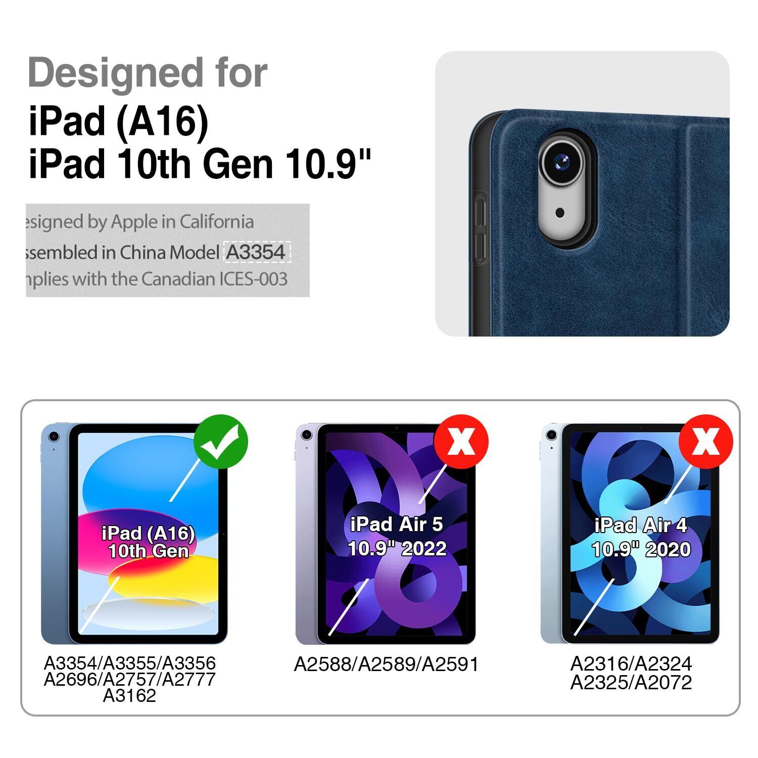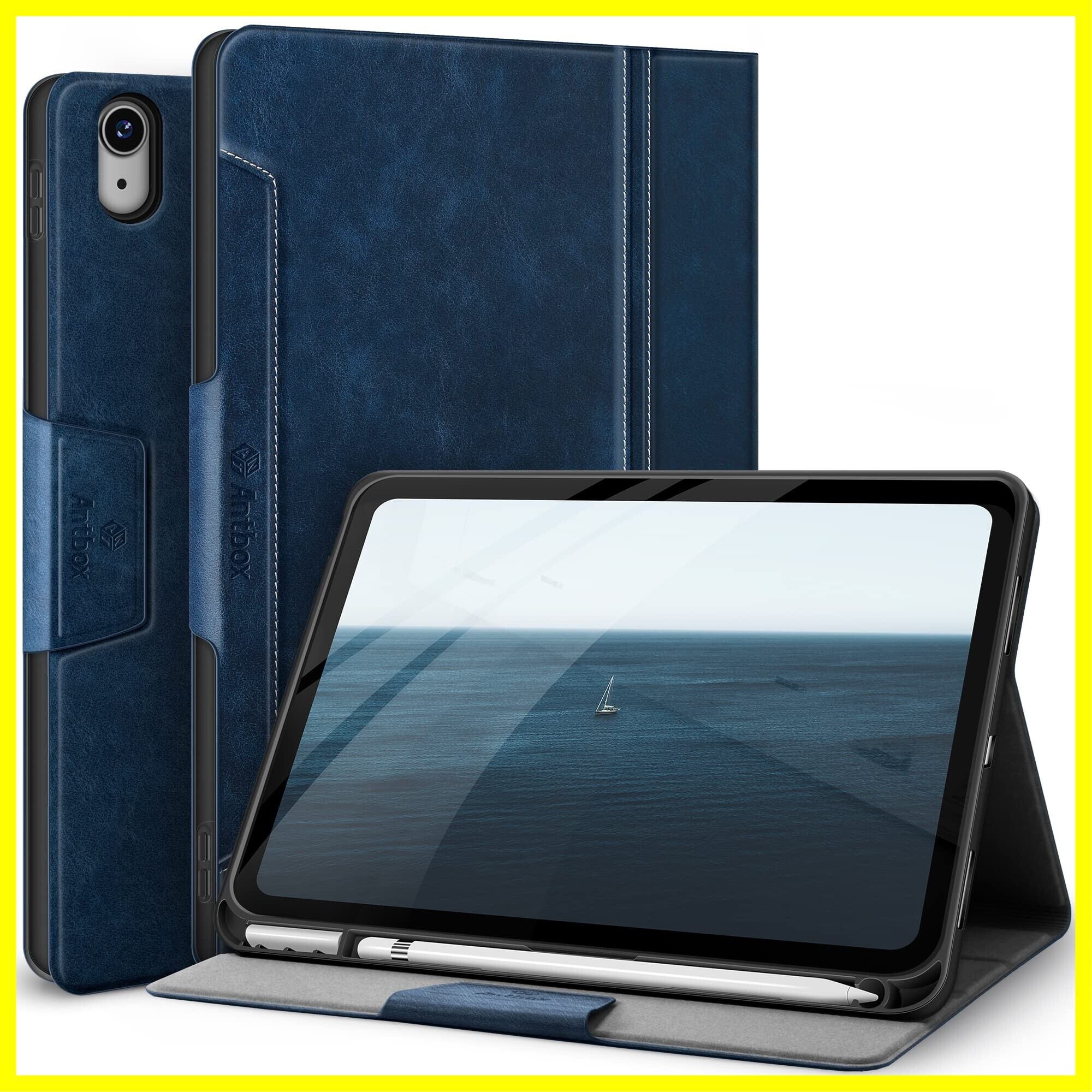 Antbox iPad 第11世代 ケース(A16) 第10世代 ケース 10.9インチ 高級ソフトPUレザー製 ひび割れ防止 耐衝撃 アップルペンシル収納可 オートスリープ&スタンド機能付き 全面保護 (ブルー)