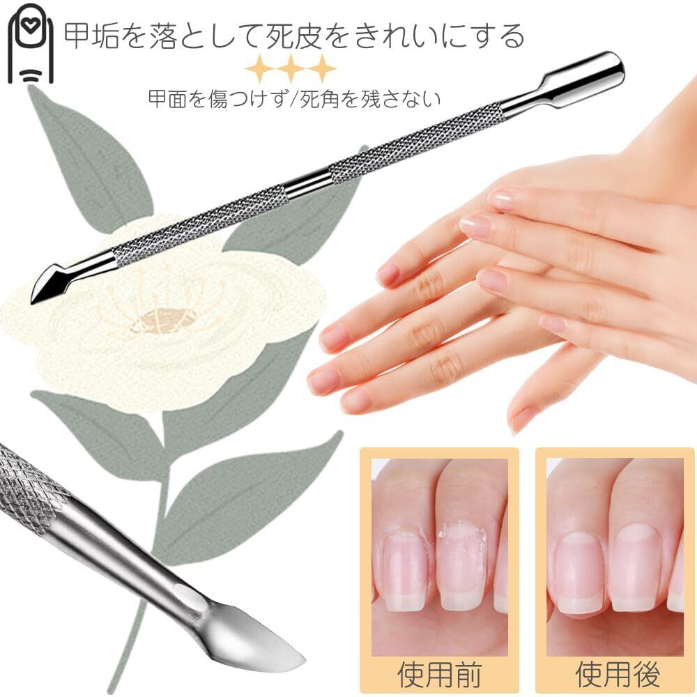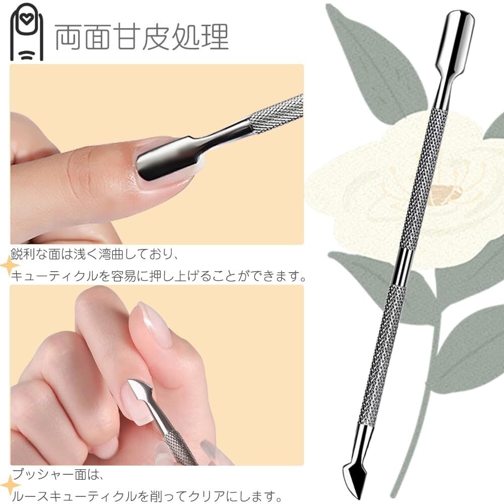 キューティクルプッシャー ネイルツール 1個セット 両面甘皮処理 甘皮ケア 甘皮の除去に 長さ12.5cm ステンレス製 耐久性 錆びに 滑り止 防水 使いやすい ネイルオフ ジェルネイル用 ネイル用品 (プッシャー&尖ったシャベルで)