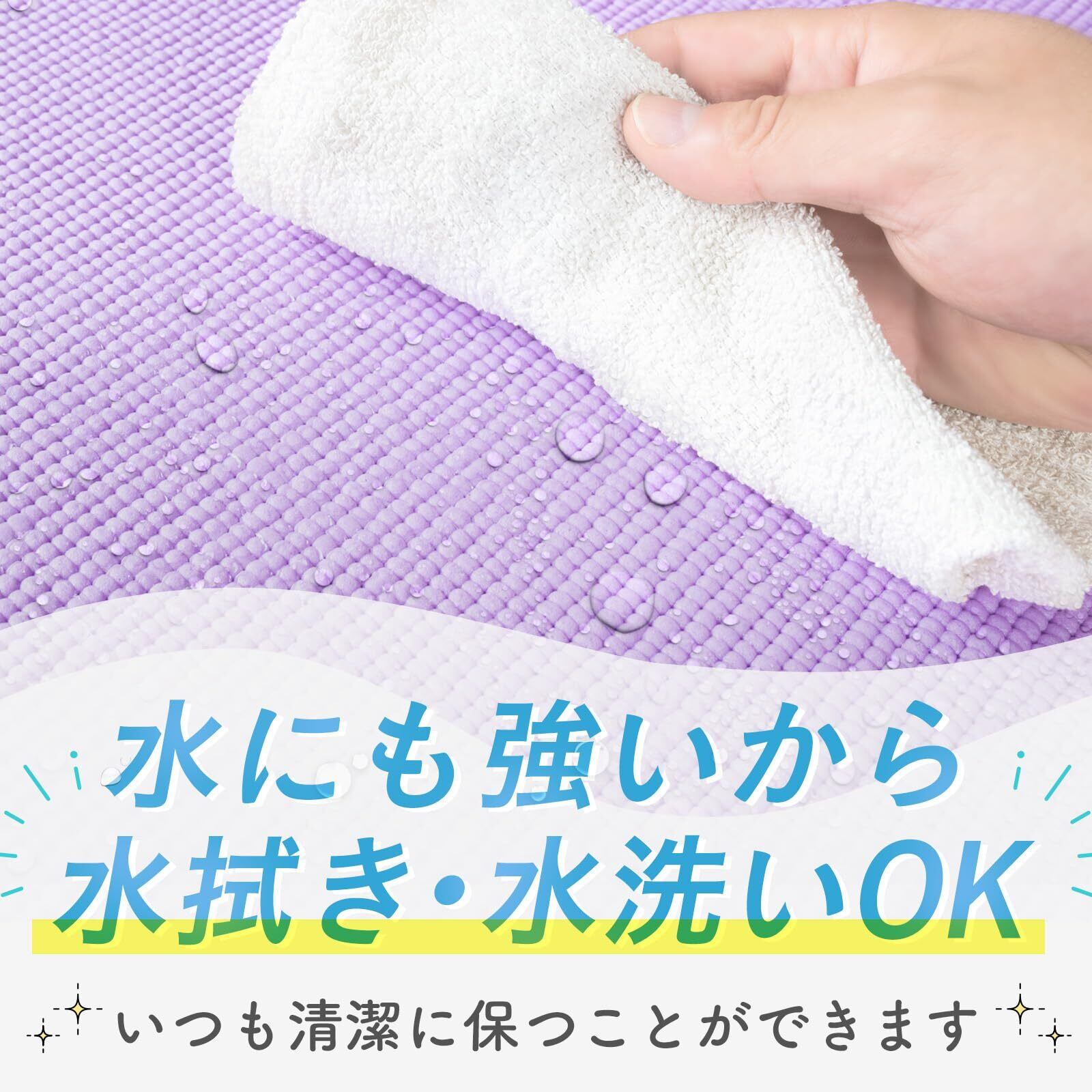 他社のヨガマットで多い縦エンボスだと前後の動きが多いトレーニングやヨガをする際滑ってしまって集中できない。凹凸を横にすることで厚みを残しながらグリップ力もUP!