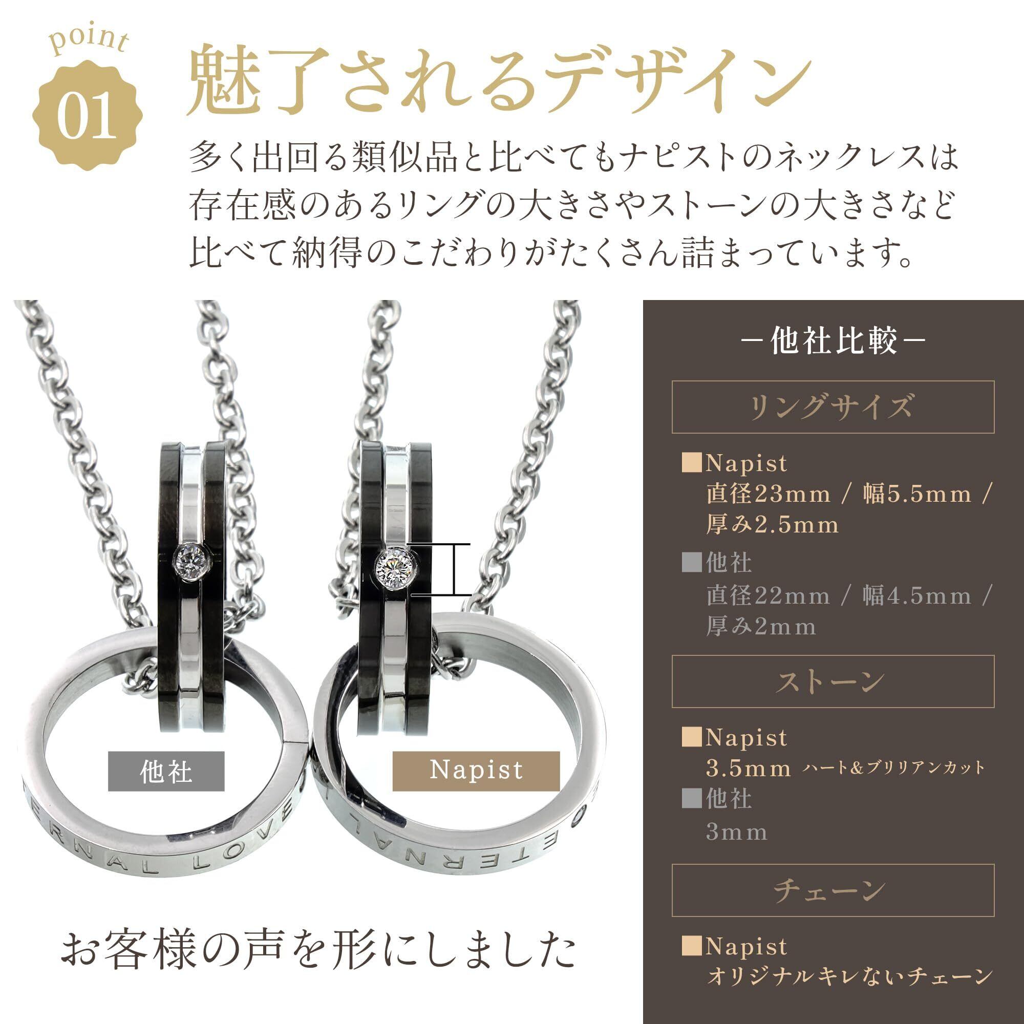 【Napistのダブルリングネックレス】大好評のダブルリングネックレスが新化しました。ストーン( キュービックジルコニア )の大きさとカットが変わりました。また、メンズ・レディース共にリングサイズを全体的に大きくしたことにより、類似品との違いは歴然です。