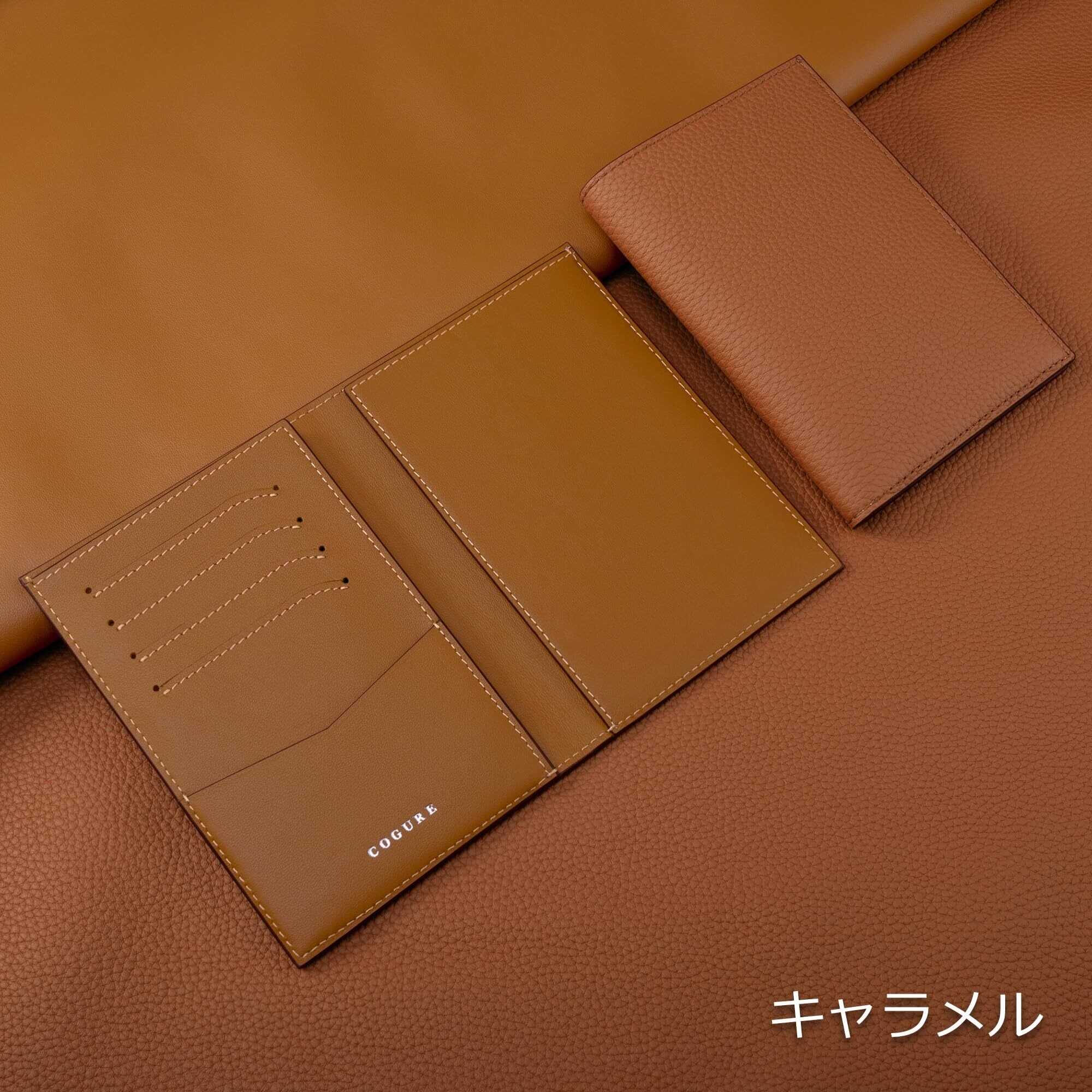 [COGURE] コグレ 本革 パスポートケース パスポートカバー カードポケット フリーポケット 海外旅行 海外出張 高級 ハンドメイド ギフトボックス付き COPPAT02 キャラメル