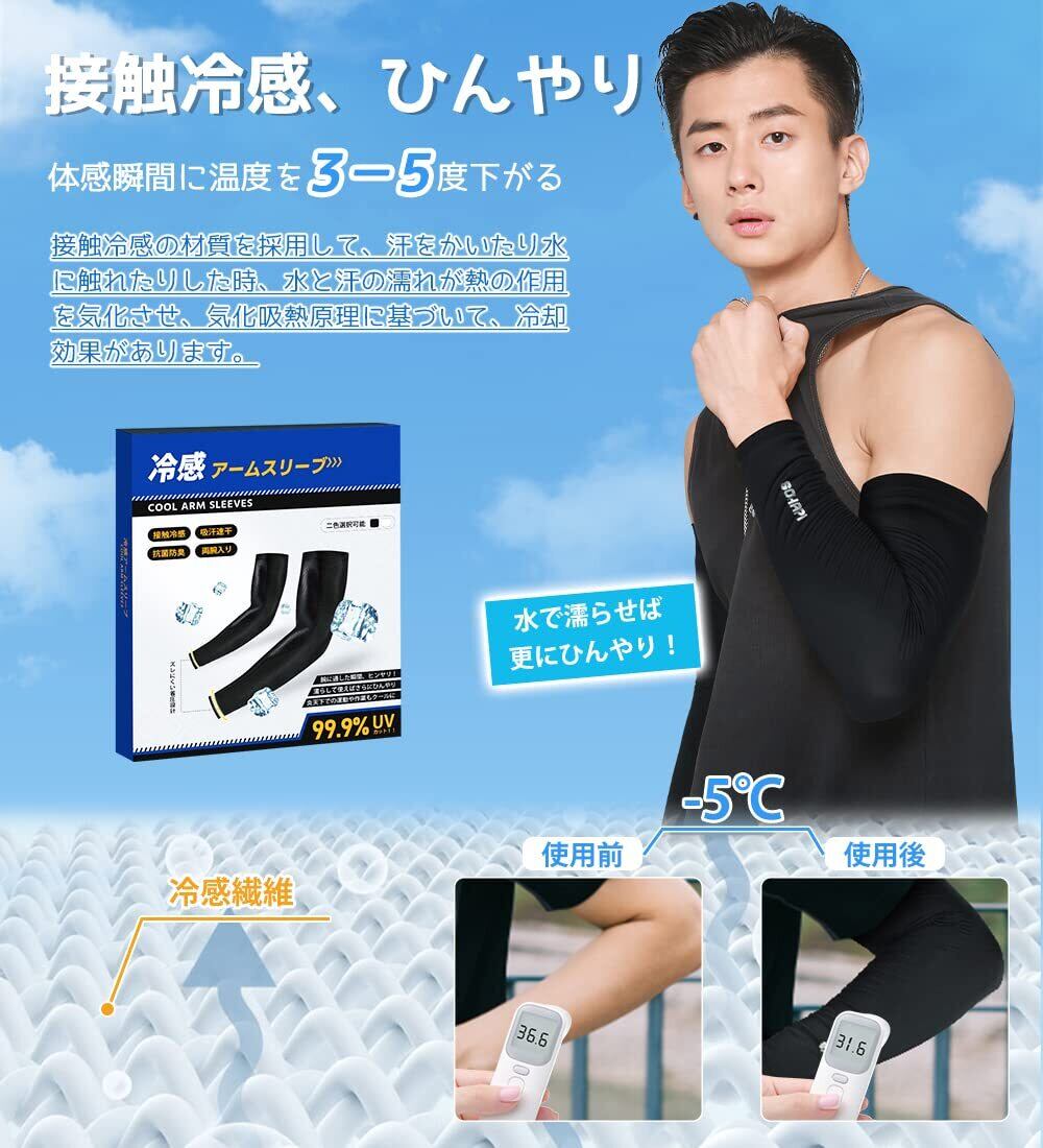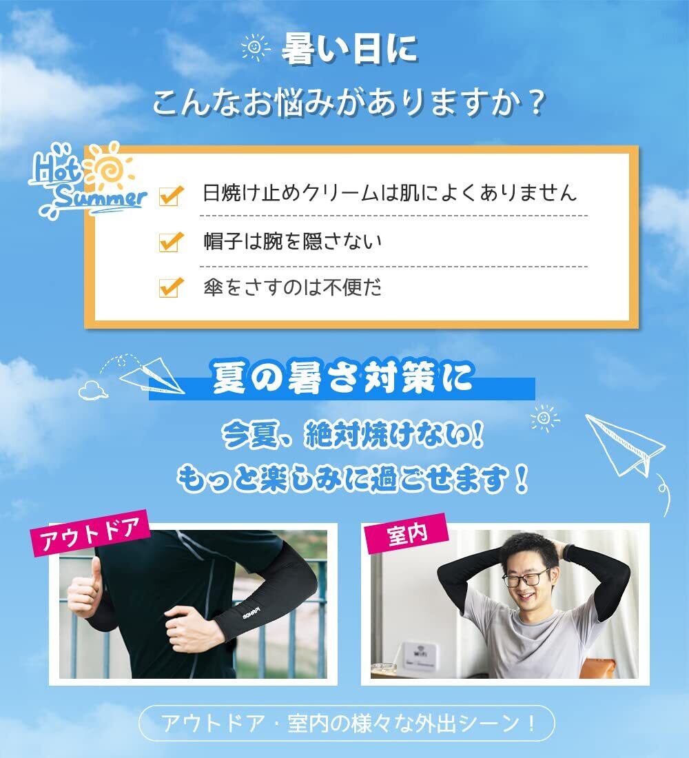 ❄【アームカバー 日焼け防止】UVカット率の最高ランクUPF50+認定品、紫外線を強力にカットする繊維素材を採用しています。暑い日に、日に焼けて肌が赤になった、敏感です。日焼け止めクリームは肌によくありません、この状況を逃げるために、このアームカバーが必要です。もっと楽しみに過ごせます!