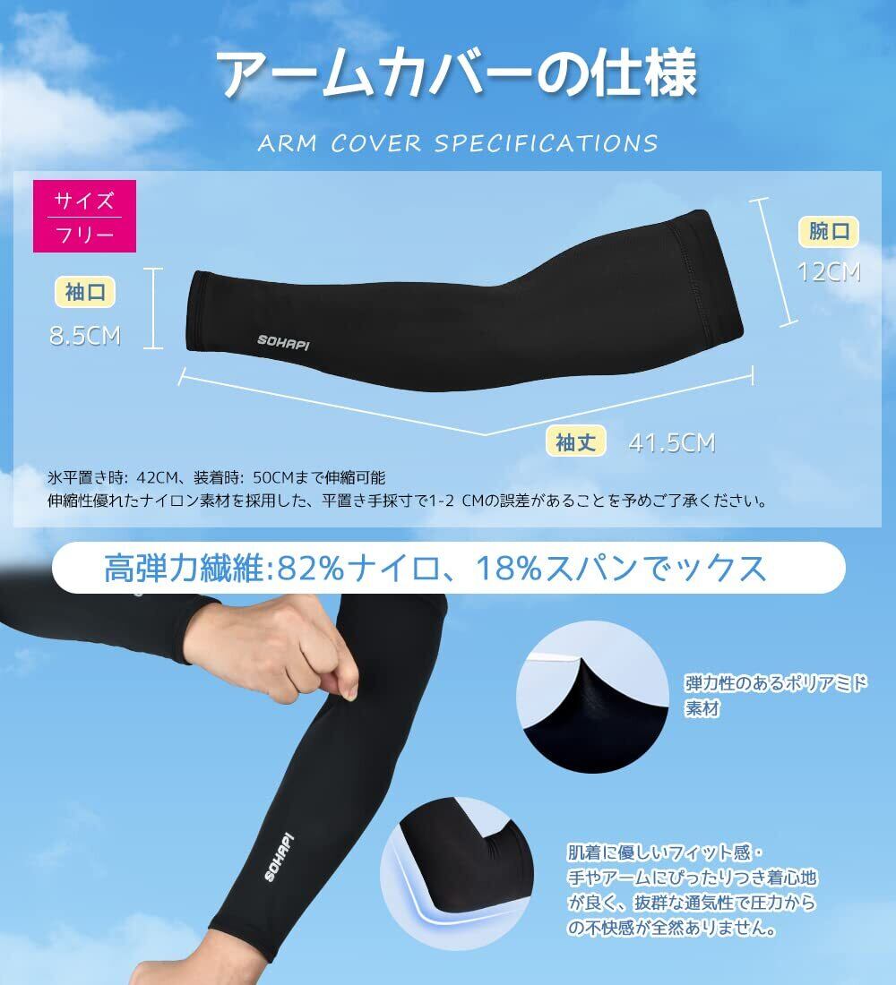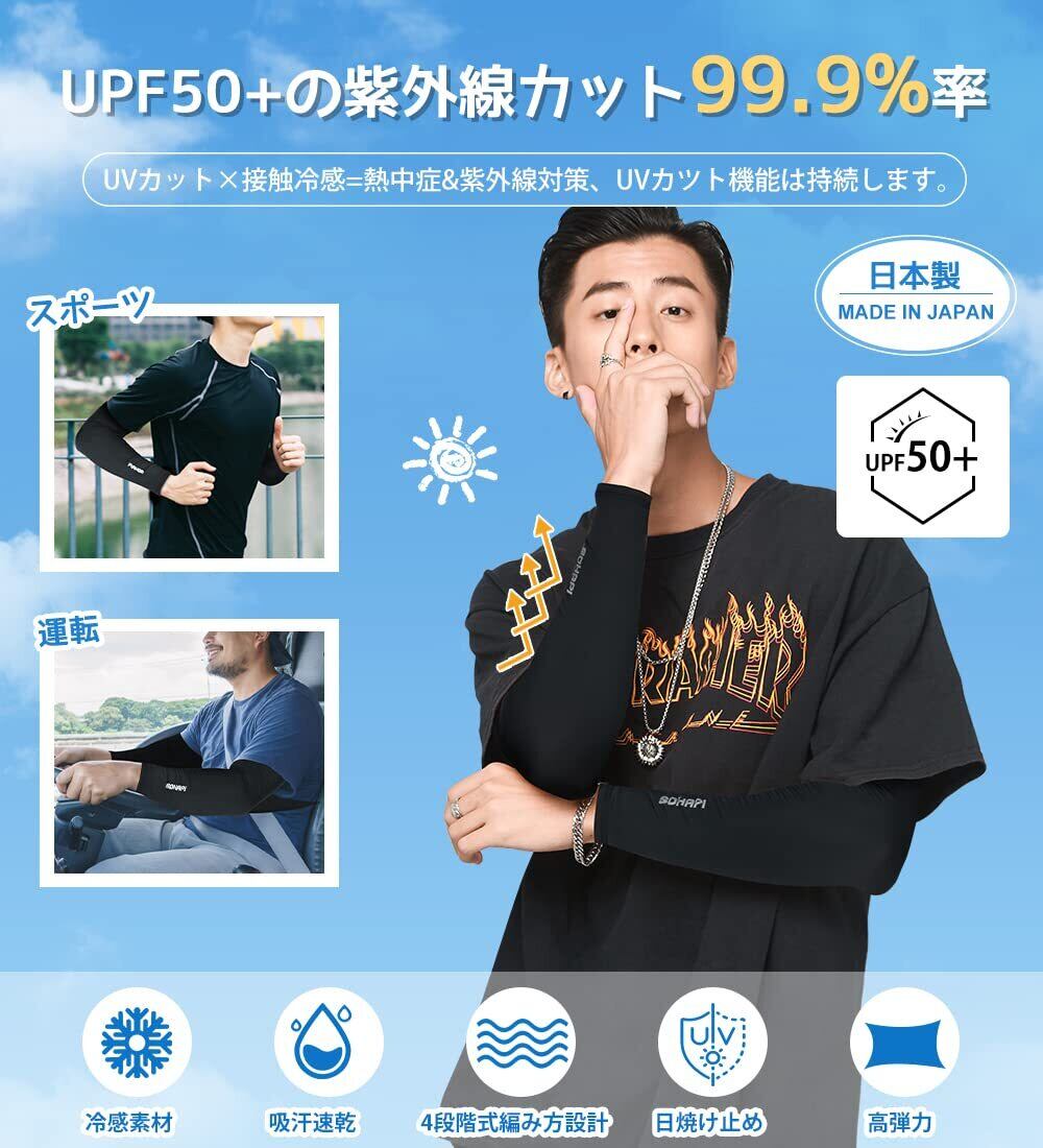 [SOHAPI] アームカバー 日焼け防止 レディース メンズ 【日本製】 夏 接触冷感−5℃ UPF50・UVカット率99.9% アームガード 腕カバー アームスリーブ ひんやり 紫外線対策 吸汗速乾 抗菌防臭 滑り止め 通気性 伸縮性 (両腕2枚組)