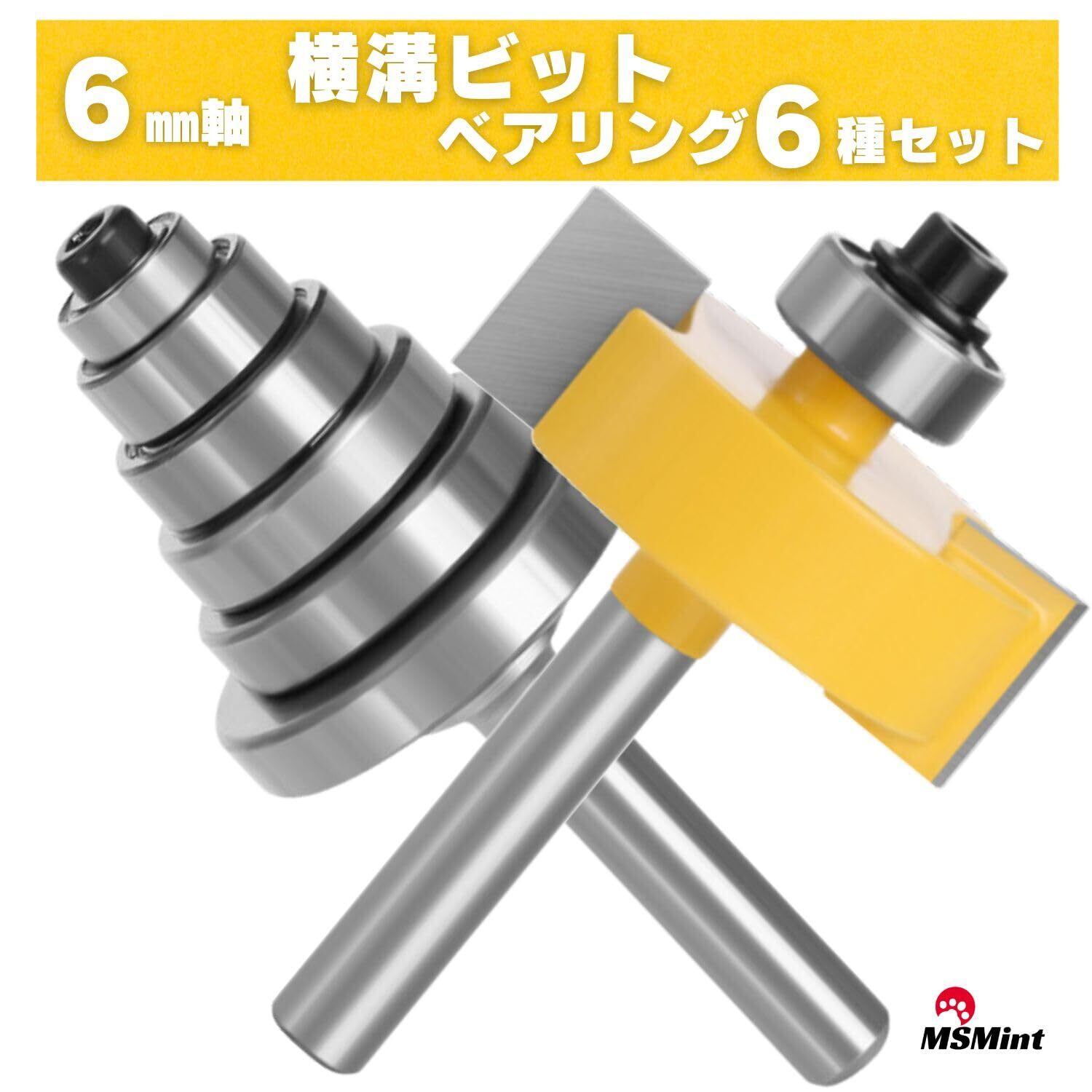 MSMint 横溝ビット ルータービット トリマービット 6㎜軸 T型 横溝 横みぞ ベアリング 交換 コロ 溝彫り 段欠き 木工 (横溝ビット ベアリング6種)