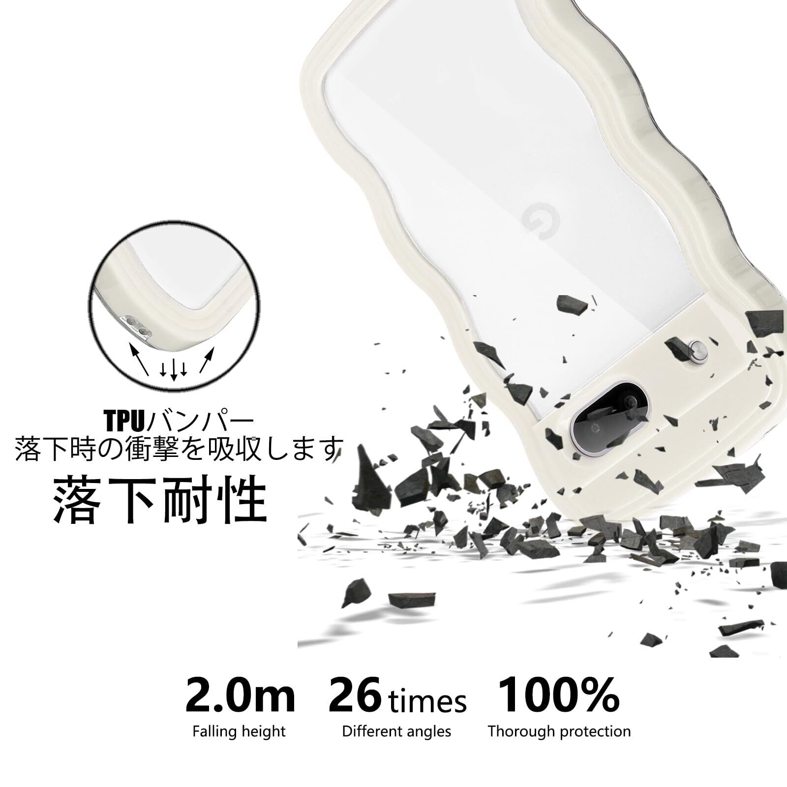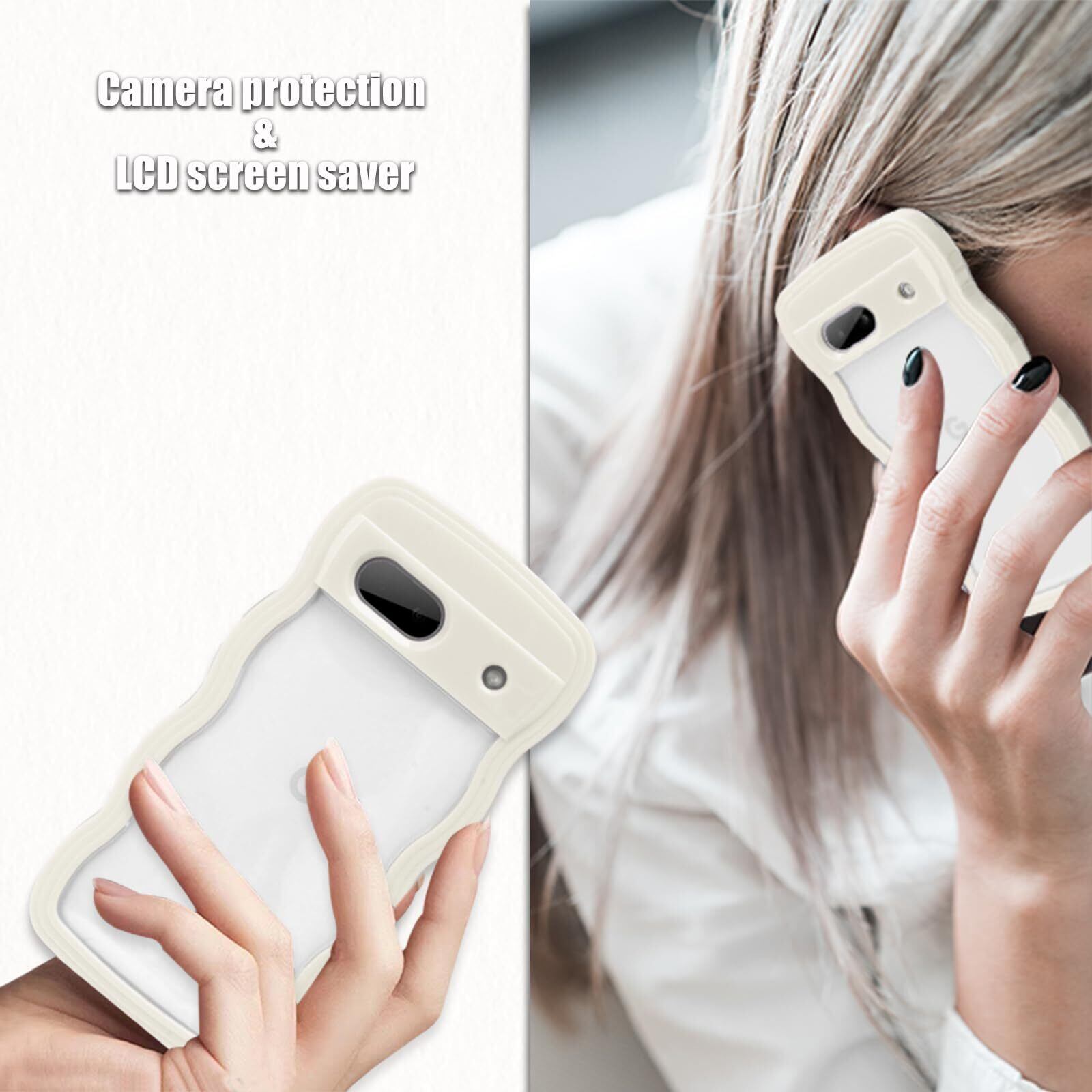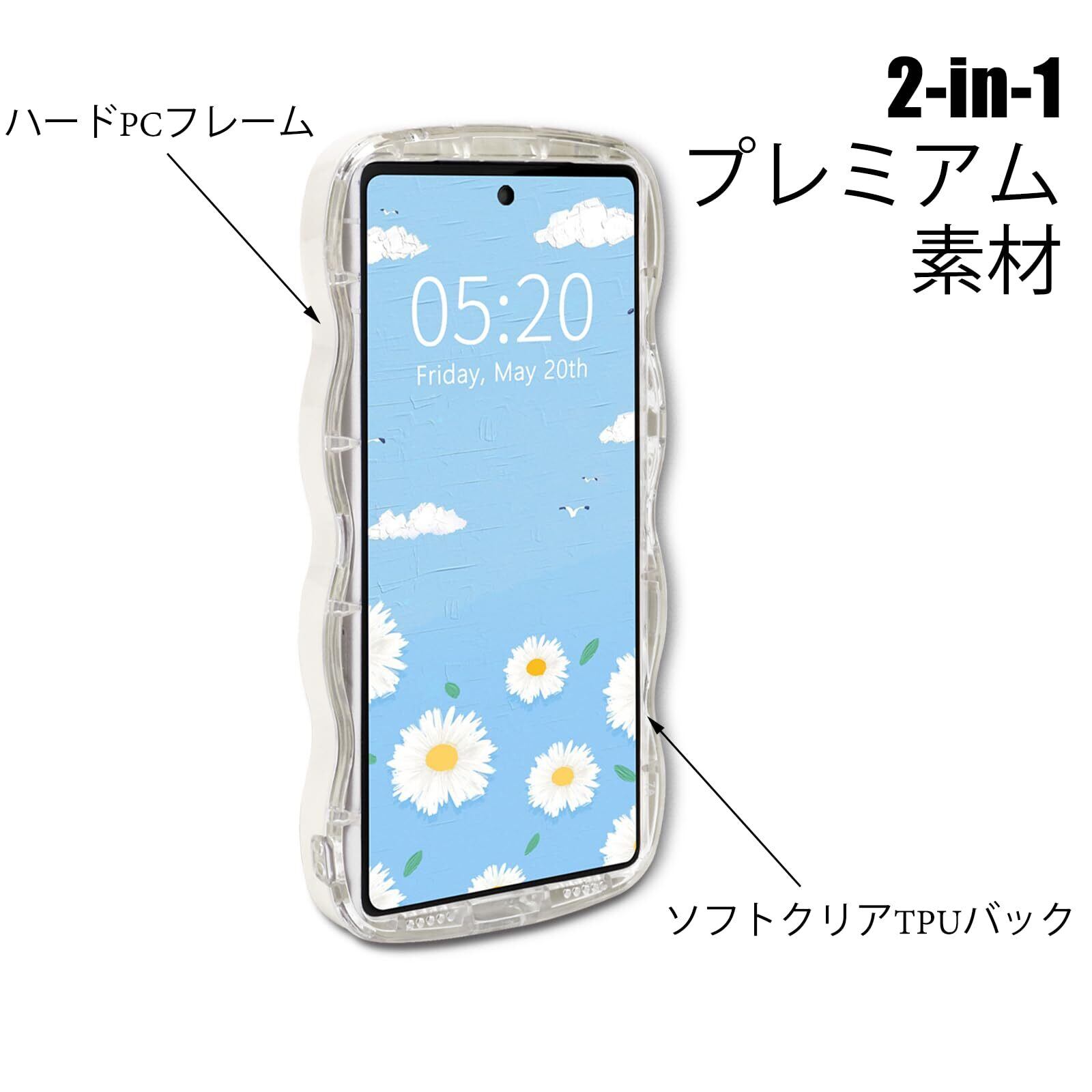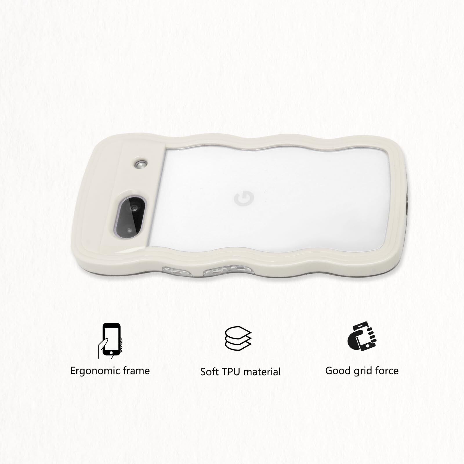 Google Pixel 6A ケース クリア ウェーブ ピクセル 6A TPU波状フレーム うねうね グーグル ピクセル6A 滑り止め スマホケースウェーブ デザイン 手にフィット 韓国 可愛い 女性用 女子向け 透明 ケースカバー 人気 落下防止 耐衝撃 ストラップホール付き グーグルピクセル6A なみなみ ワイヤレス充電対応(Google Pixel 6A-ホワイト)