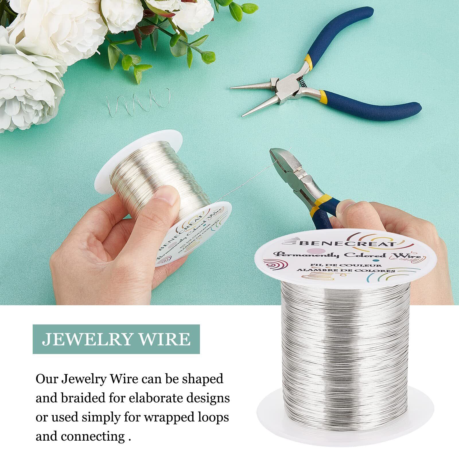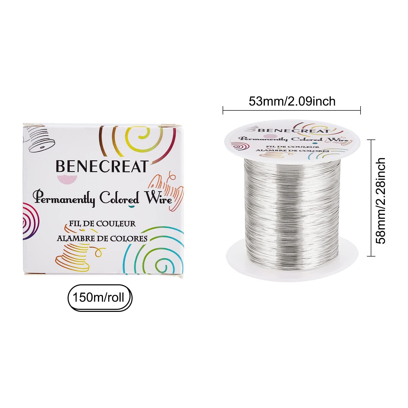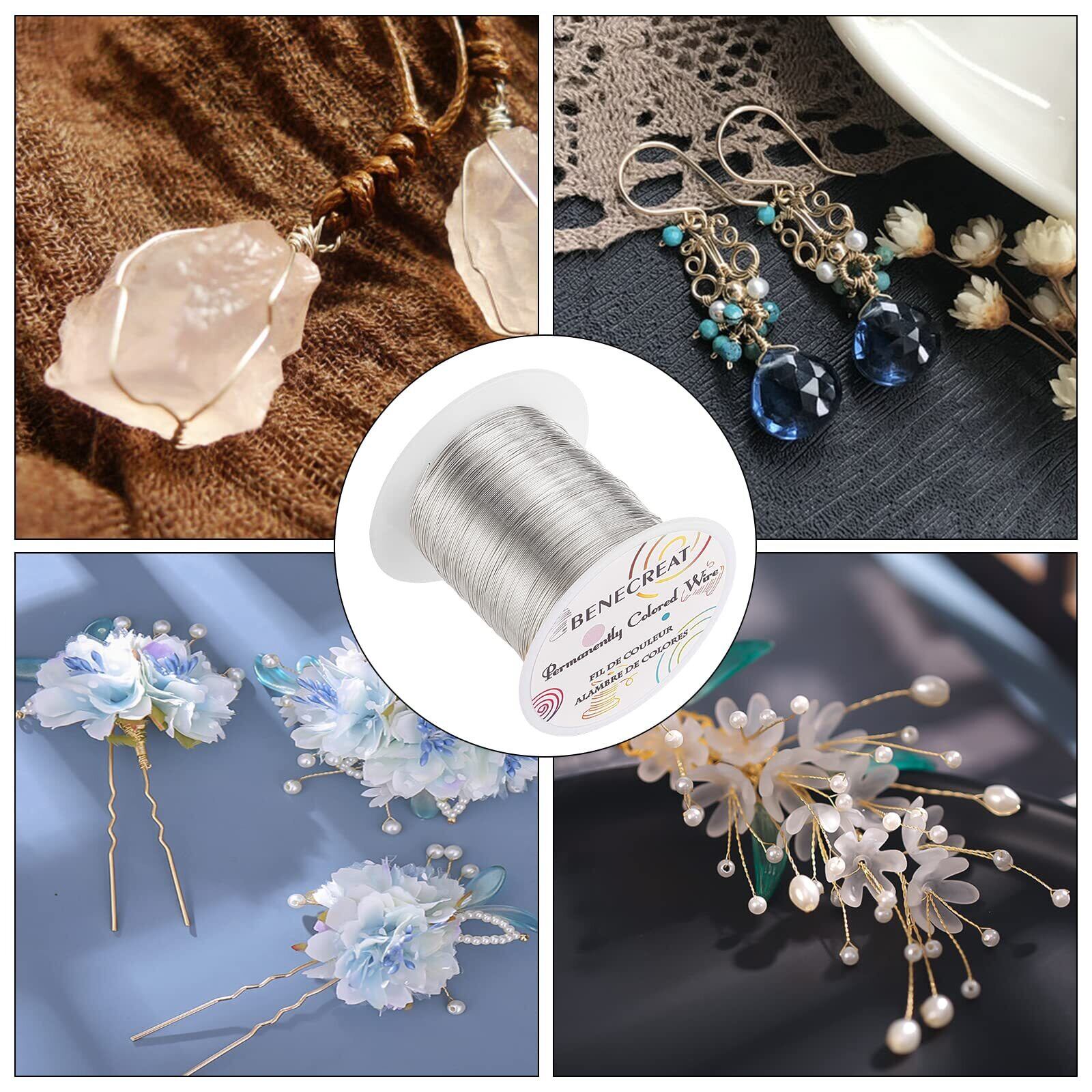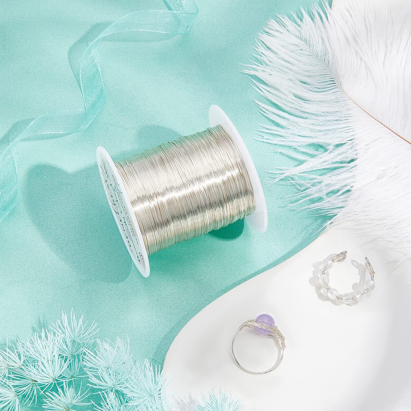 BENECREAT 120m 巻アクセサリーワイヤー 銅製ワイヤー 線径0.4mm 26ゲージ クラフト銅線 アートワイヤー 変色防止 アクセサリーパーツ DIY 手作り 光沢感 アクセサリー用ワイヤー ビーズクラフト ジュエリー作り(シルバー)