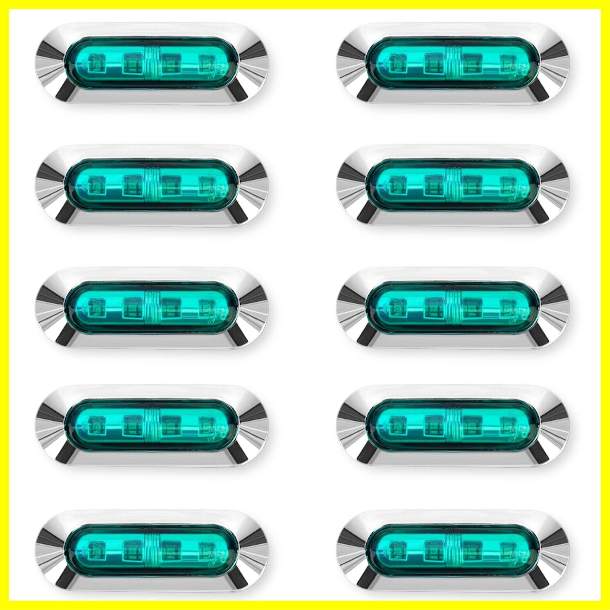 Lezalic LED 4連 カラーレンズ 10個セット 12V 24V 高輝度 小型 ランプ サイド マーカー 防水型 トラック メッキ カスタム (グリーン)