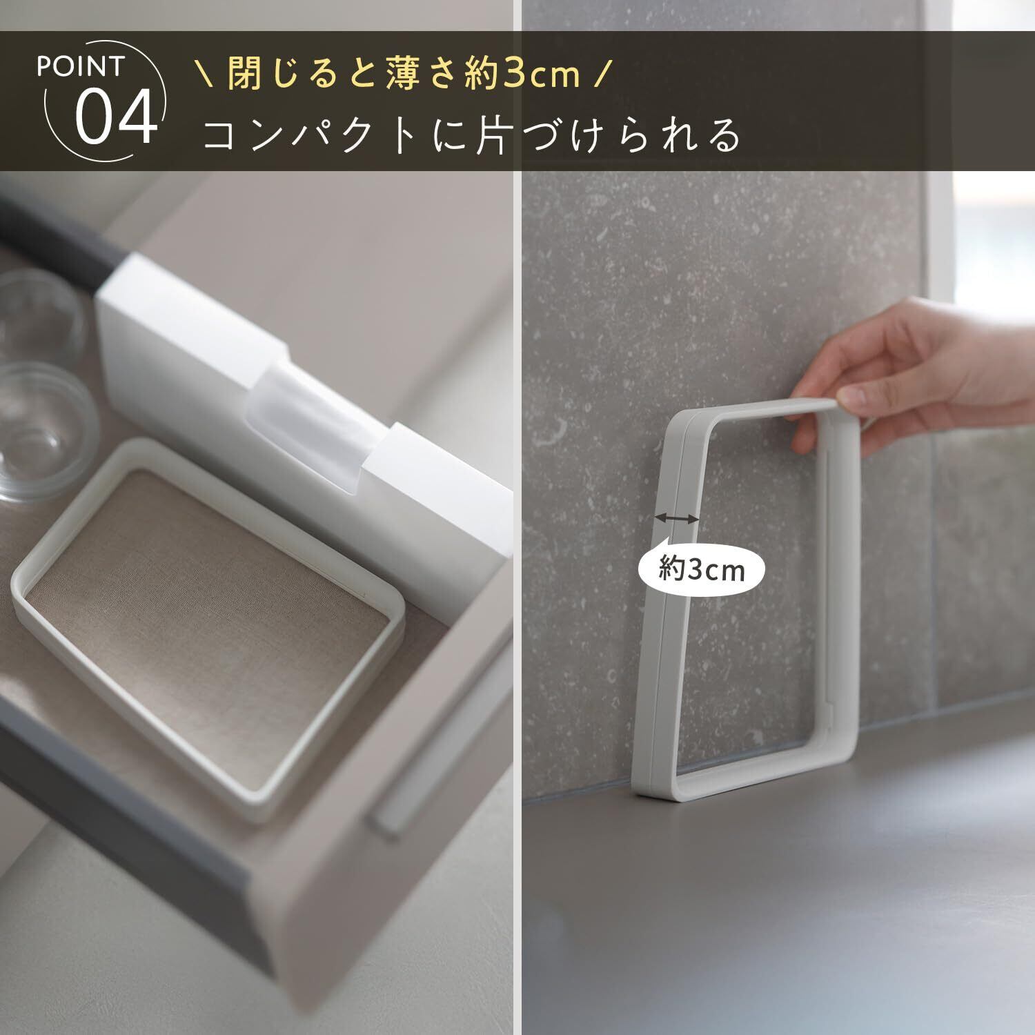 【材質】本体:ABS樹脂・熱可塑性エラストマー 【サイズ】(使用時最大)約220×180×95mm、(収納時)約31×180×139mm 【耐熱温度】70℃ 【生産国】中国 【ご注意】変形の原因となりますので、煮沸消毒や熱湯のつけ置きはしないでください。本来の用途以外でのご使用はおやめください。