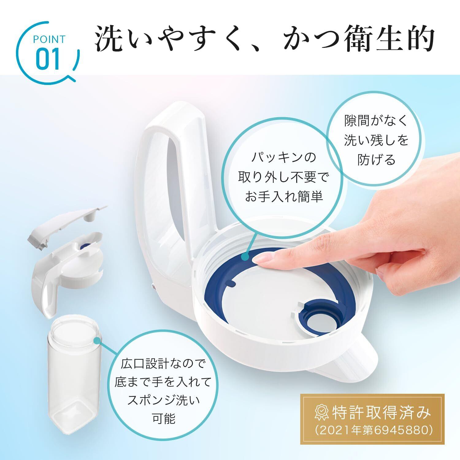 本体は底まで手洗いが可能な広口設計。