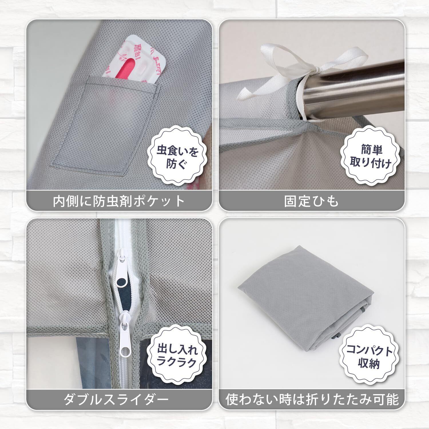 【衣類をまとめて保管】:オフシーズンの洋服をまとめてホコリなどの汚れから守ります。5~7枚までの衣類の保管が可能。