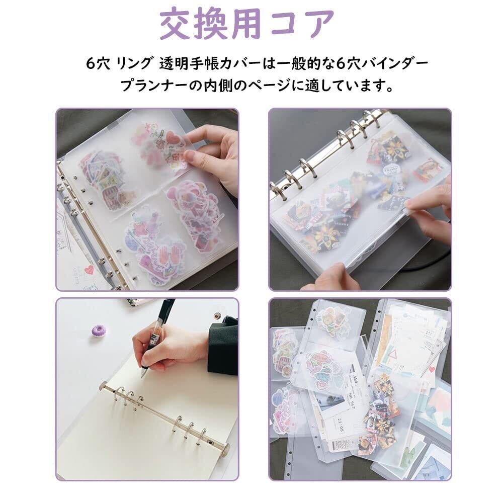【システム手帳】6穴A6サイズ/6穴A5サイズ、6穴 リング 透明手帳カバーは一般的な6穴バインダープランナーの内側のページに適しています。※ご注意:購入前にサイズをご確認くださいませ。