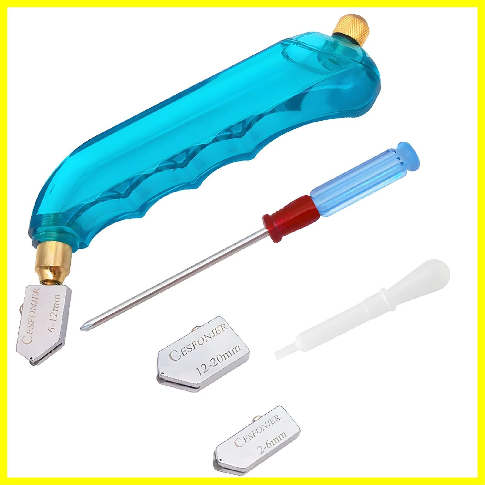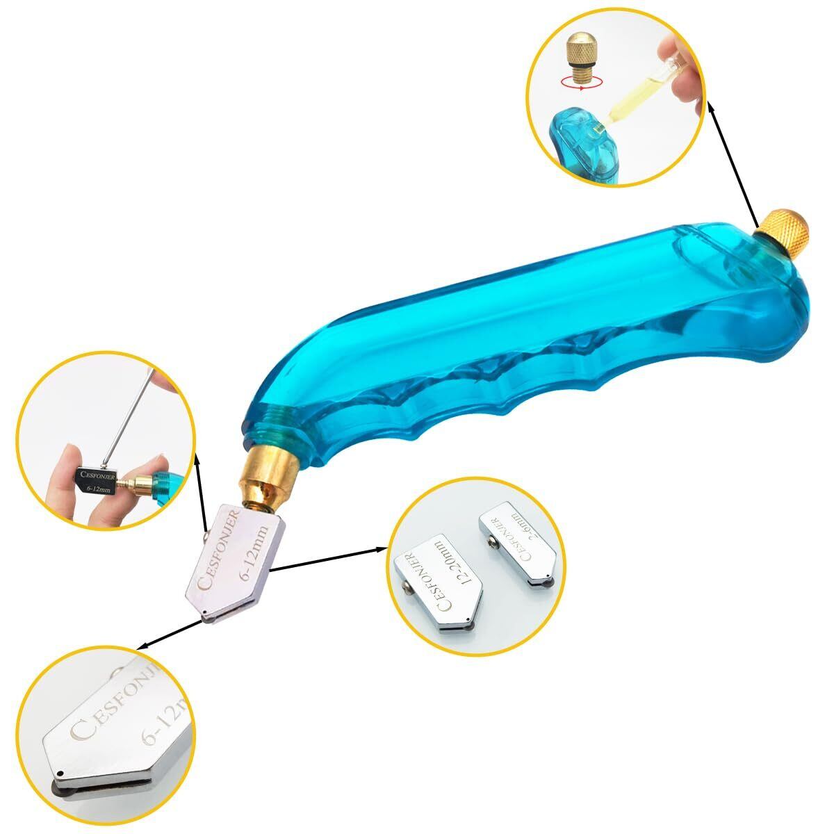 CESFONJER ガラスカッタ、超硬 ガラス切りカッター 切り、ガラスカッターオイル注入タイプ余分な交換可能なヘッドとオイルリザーバー - 2mm-6mm / 6mm-12mm / 12mm-20mm。